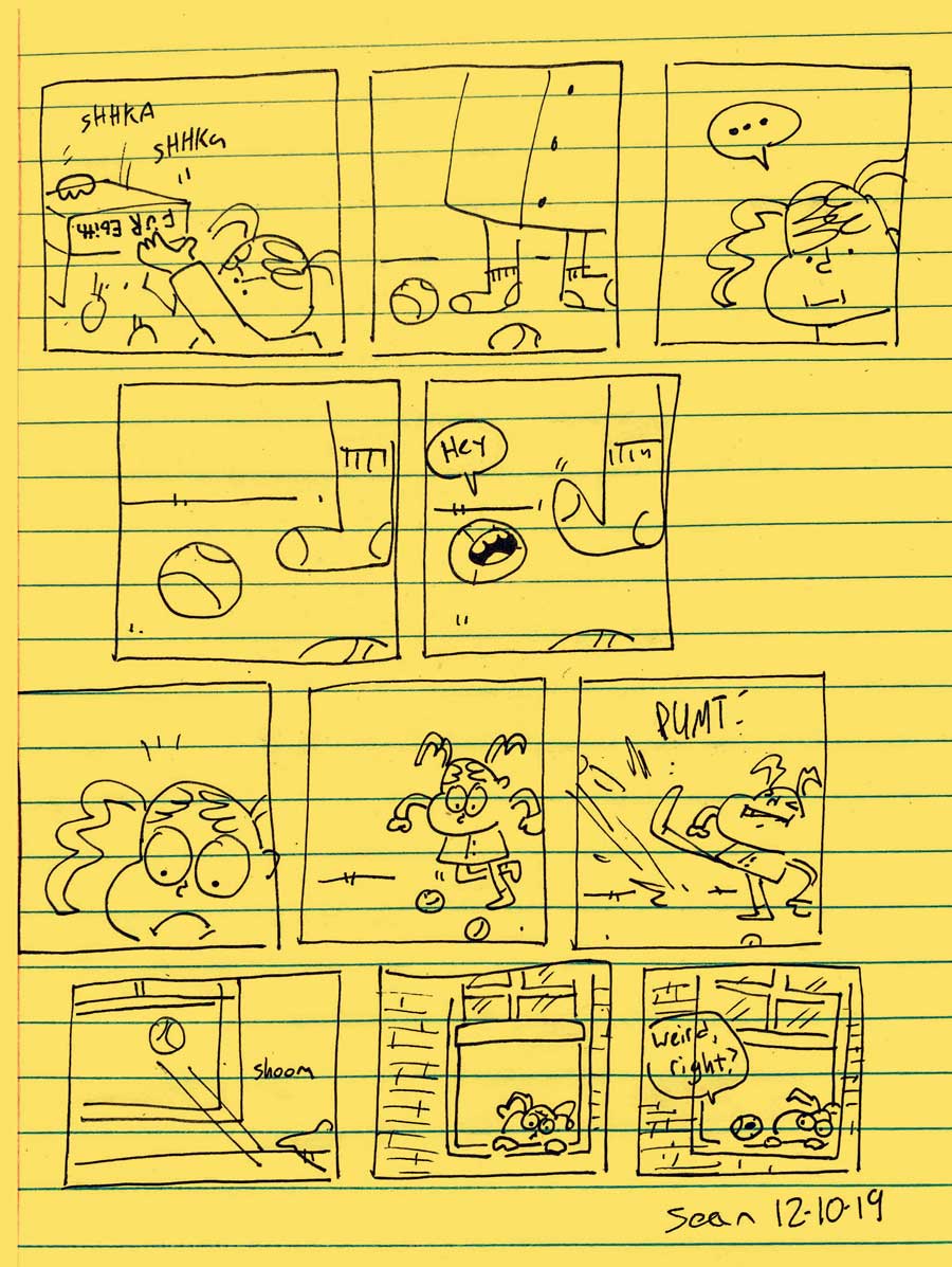 A comic made up as it goes along! Creators Sean & Zach alternate making pages, writing the comic as it goes. We don't even know what it's about yet!