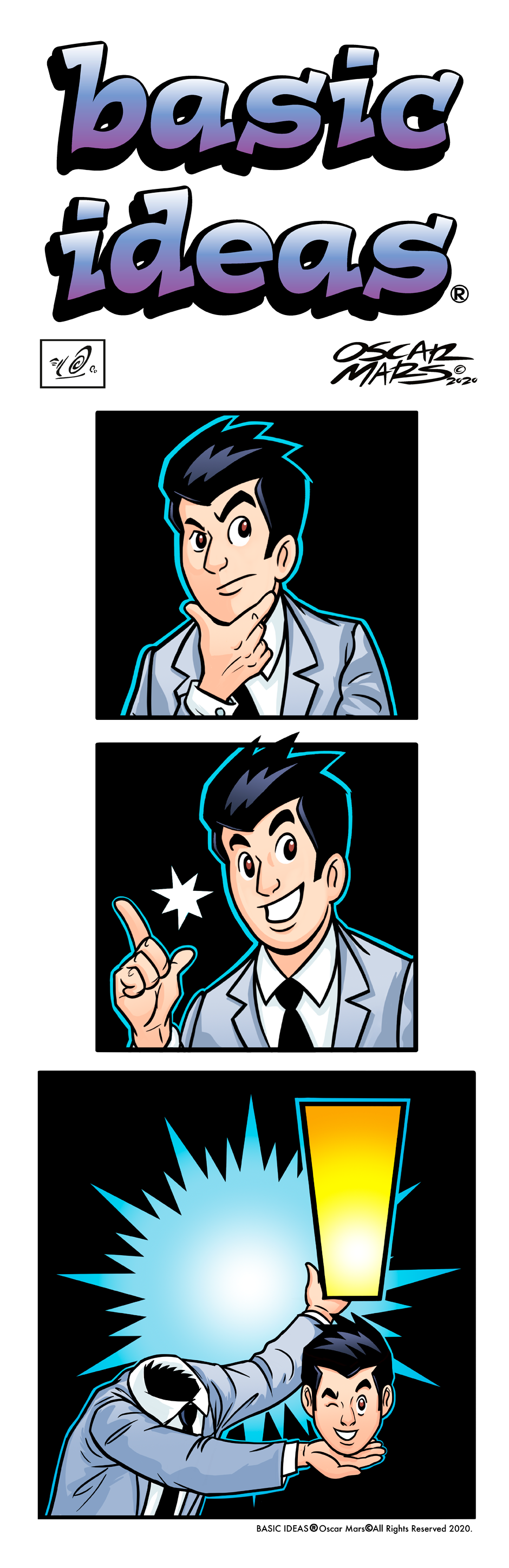 "Basic Ideas is a draw exercise, a creative search that uses the comic strip in order to have fun and find a solution to everyday situations and sometimes complexity of life.