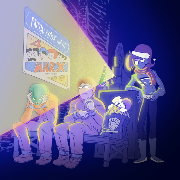 https://tapas.io/series/Inhumane-Resources That's supervillain Green Skull and Marx Brothers fanatic Arthur Bloom with the Undefeatable J Man. I really appreciate Jonny Aleksy's work on this. It's a well thought out scene and well drawn.