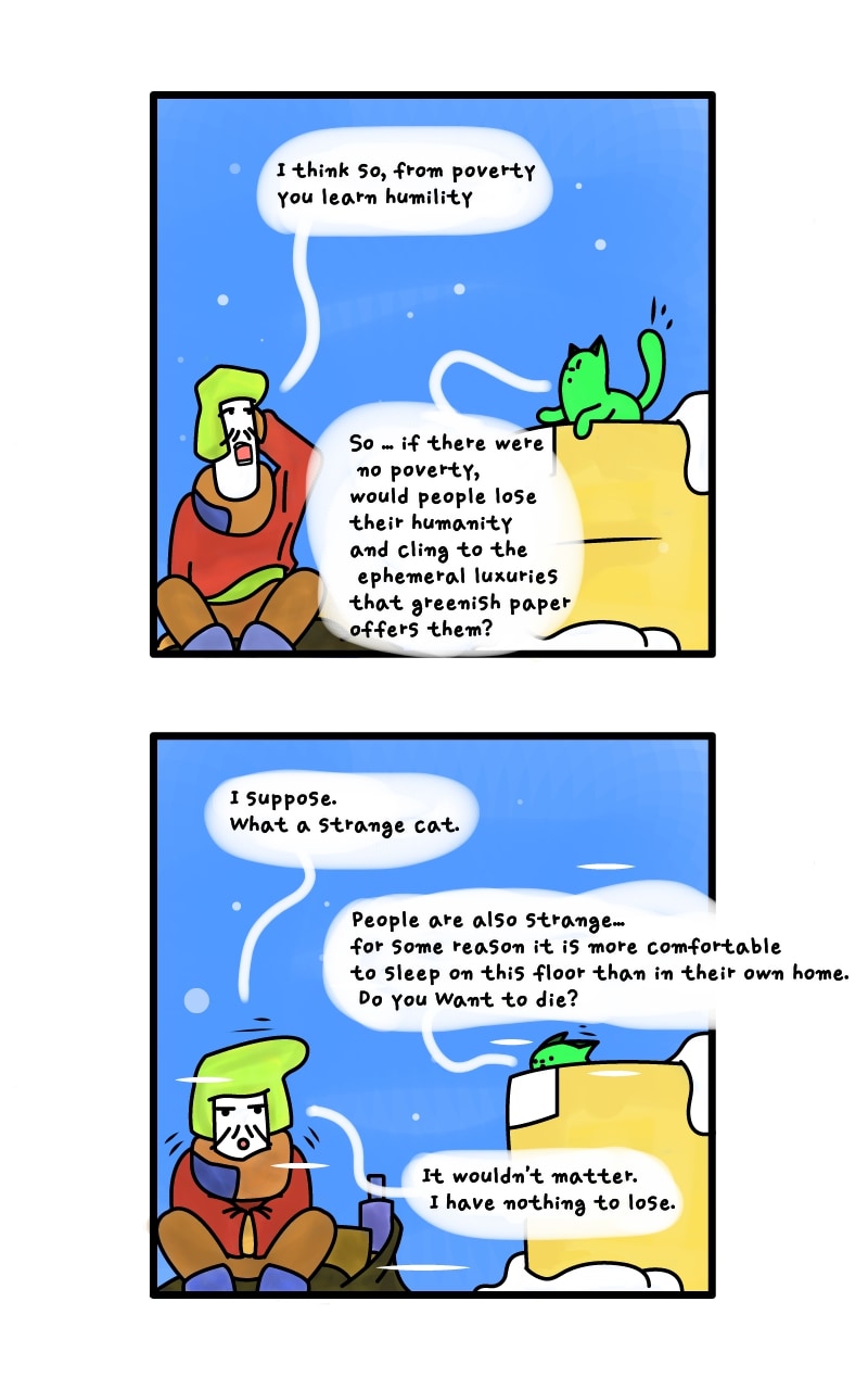 The innocent words of a green cat