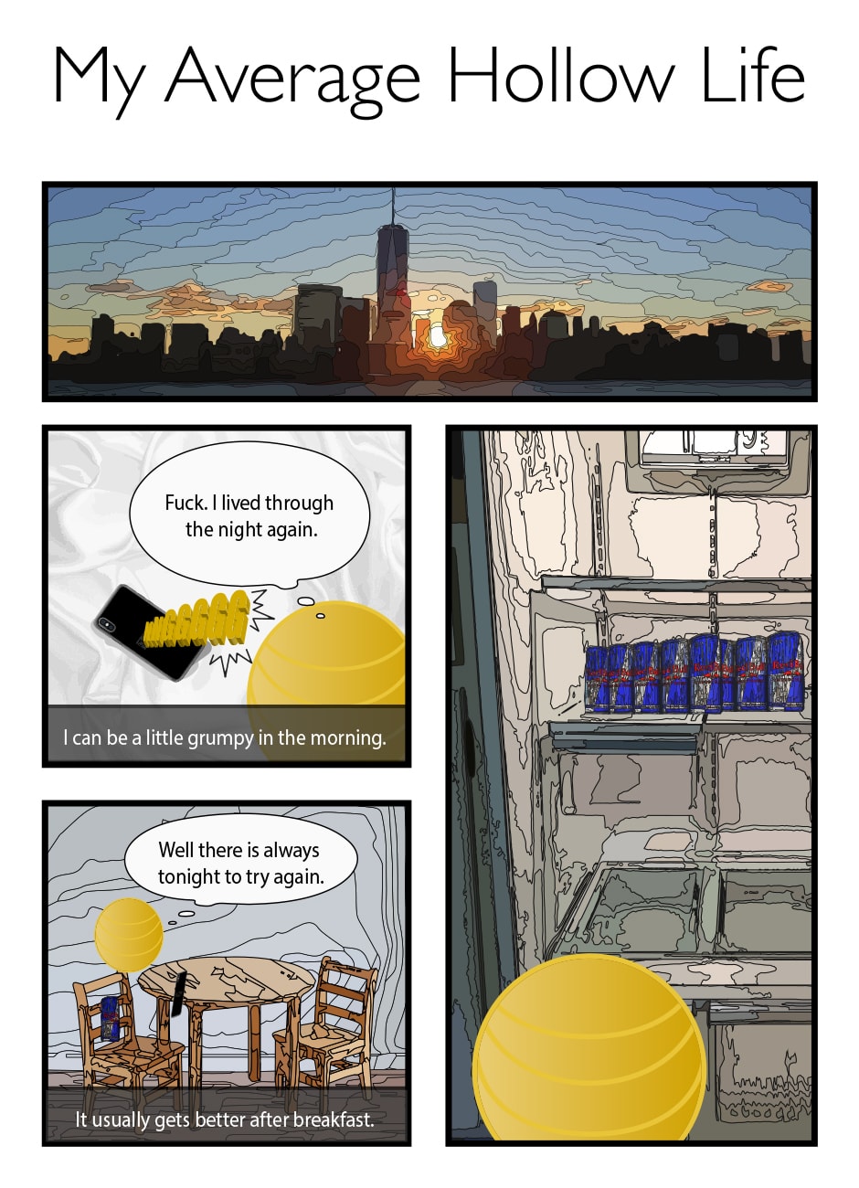 Ted is a fairly average young man. He has just started life in the working world. His days are quiet, but average. Honestly, there is nothing particularly unique about Ted, although he has no body and is tragically suicidal. (Un)fortunately for Ted, suicide is impossible without a body, and nobody seems to notice his missing skin.