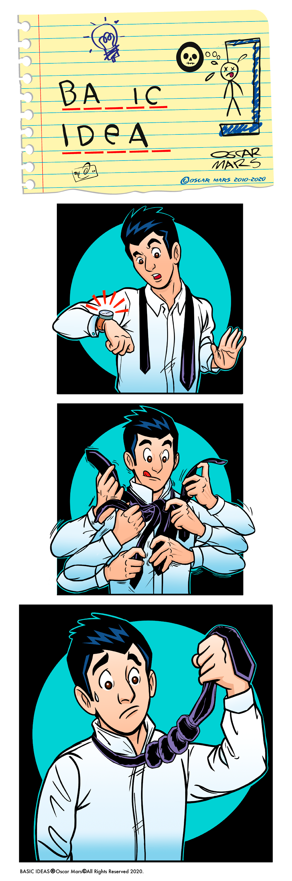 "Basic Ideas is a draw exercise, a creative search that uses the comic strip in order to have fun and find a solution to everyday situations and sometimes complexity of life.