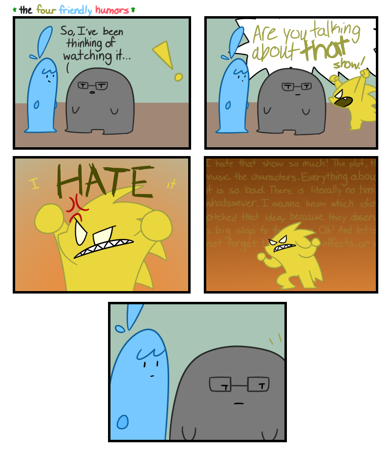 I take it Choleric has a YouTube Channel where he makes five hour long video essays on "Here's why popular thing is terrible and I hate it!"?