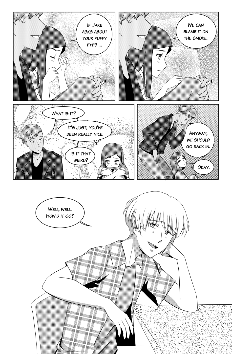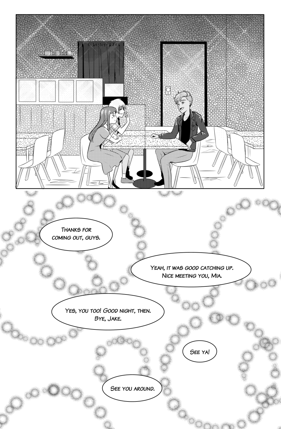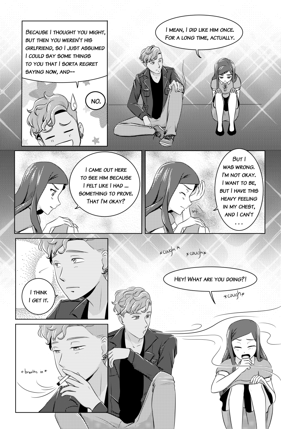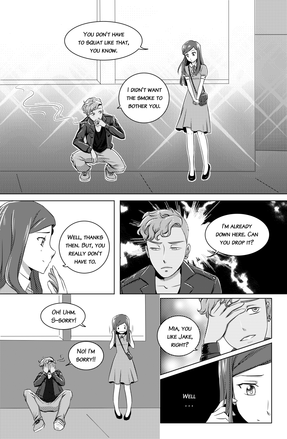 Thanks for your patience with this update! I will be adding the splash page at the beginning of the next update! I didn't want to keep you all waiting any longer for this set of pages. What do you think of Aaron and Mia's heart-to-heart moment?