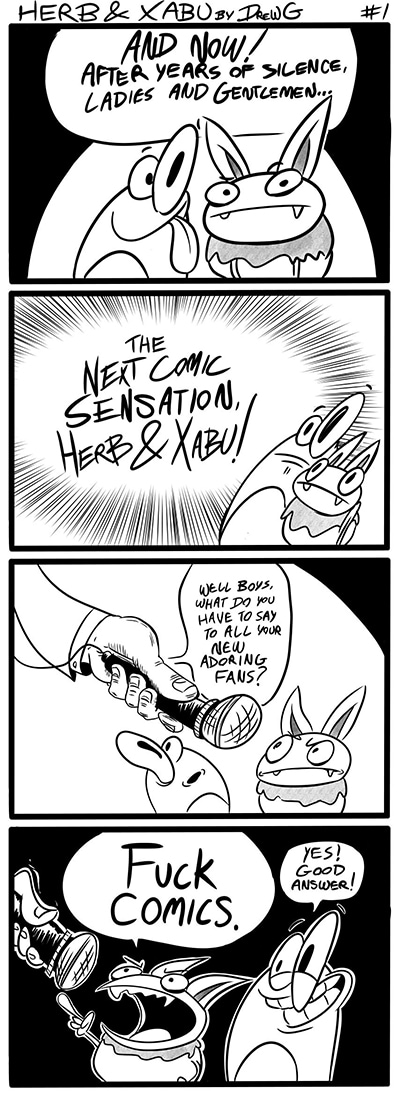 I'm baaaaack. Got some comics on the way and a cartoon I've been breaking my spine over. This is going to be fun.