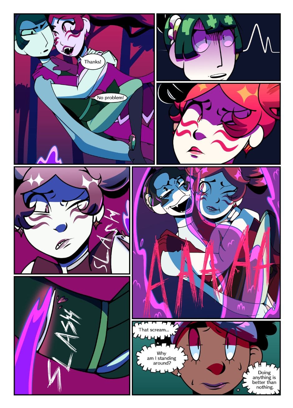 This was something I wanted to establish in Chapter 0, but because the other girls didn't get hit, it didn't show