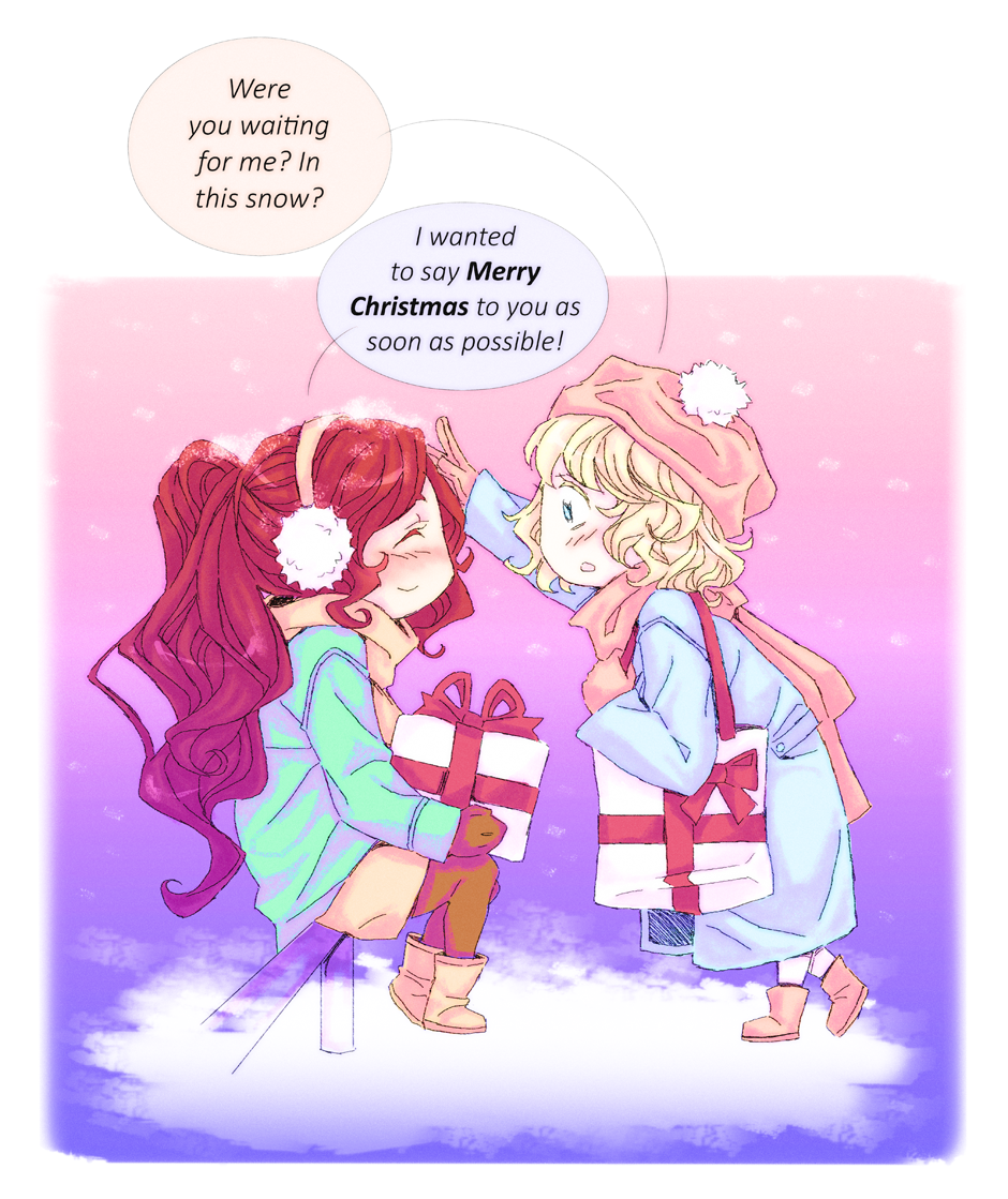 Merry Christmas to Everyone!!! It's our usual Christmas Art Trade with @hangy00 ^_^ I drew her girls from her comic and she drew Yuuri. Check out her GL/BL comic The Traveler https://tapas.io/series/thetraveler ANDDD I'm almost finished with the new page for YP, so stay tuned! It's hopefully coming tomorrow but definietly in the next few days! ^_^