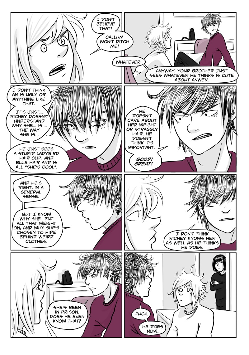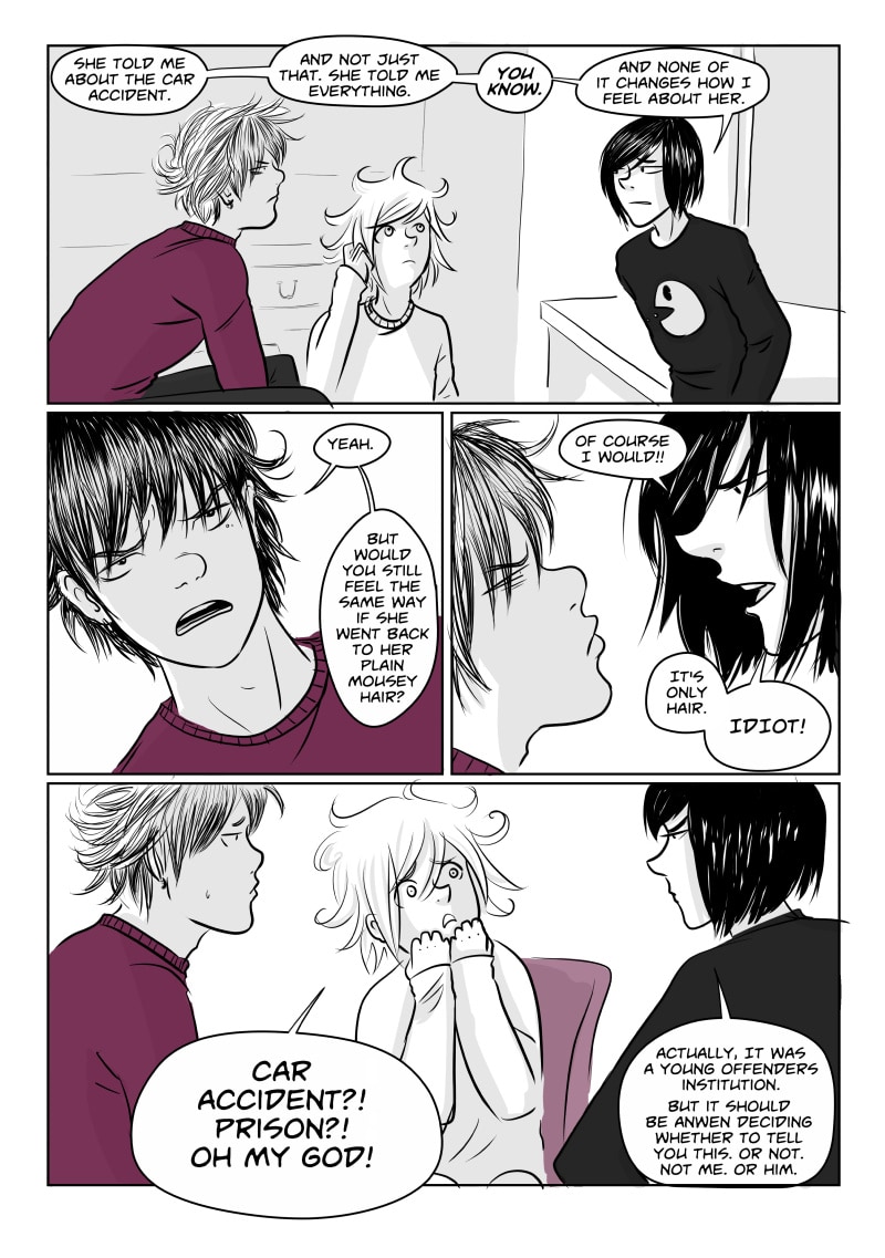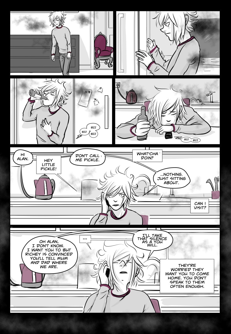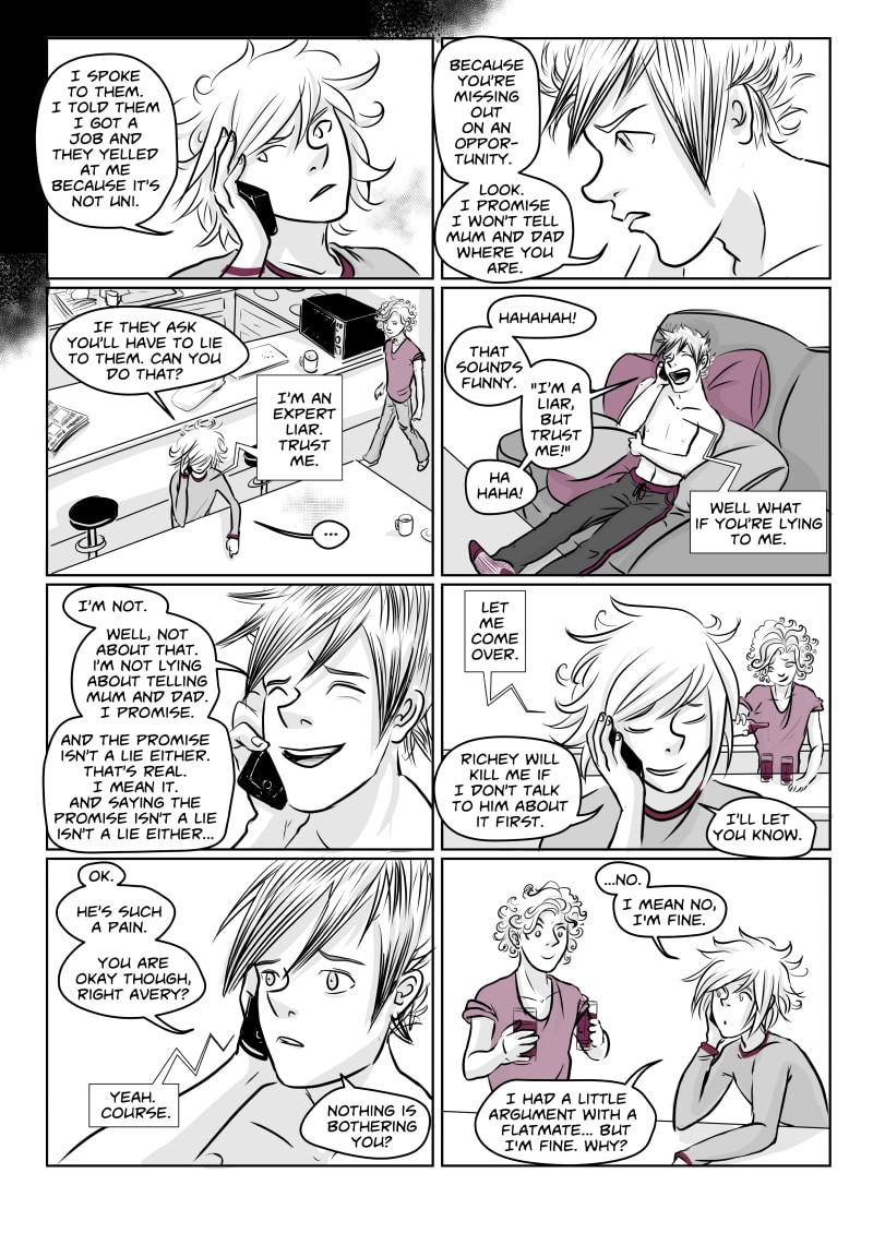 Unable to cope at college and plagued by black wisps when unhappy or stressed, Avery runs away to London with his younger brother Richey . There they briefly stay with their protective older brother Alan who is distracted by his final exams, and meet a motley crew of individuals. Avery finds himself attracted to gorgeous, doe eyed Callum and Richey becomes enamoured by the aqua-haired Anwen. However Avery still sees the Black clouds, in fact they might even be getting worse, and Richey's migraines start to get more and more severe.