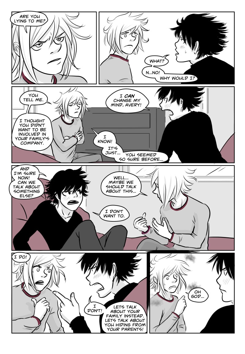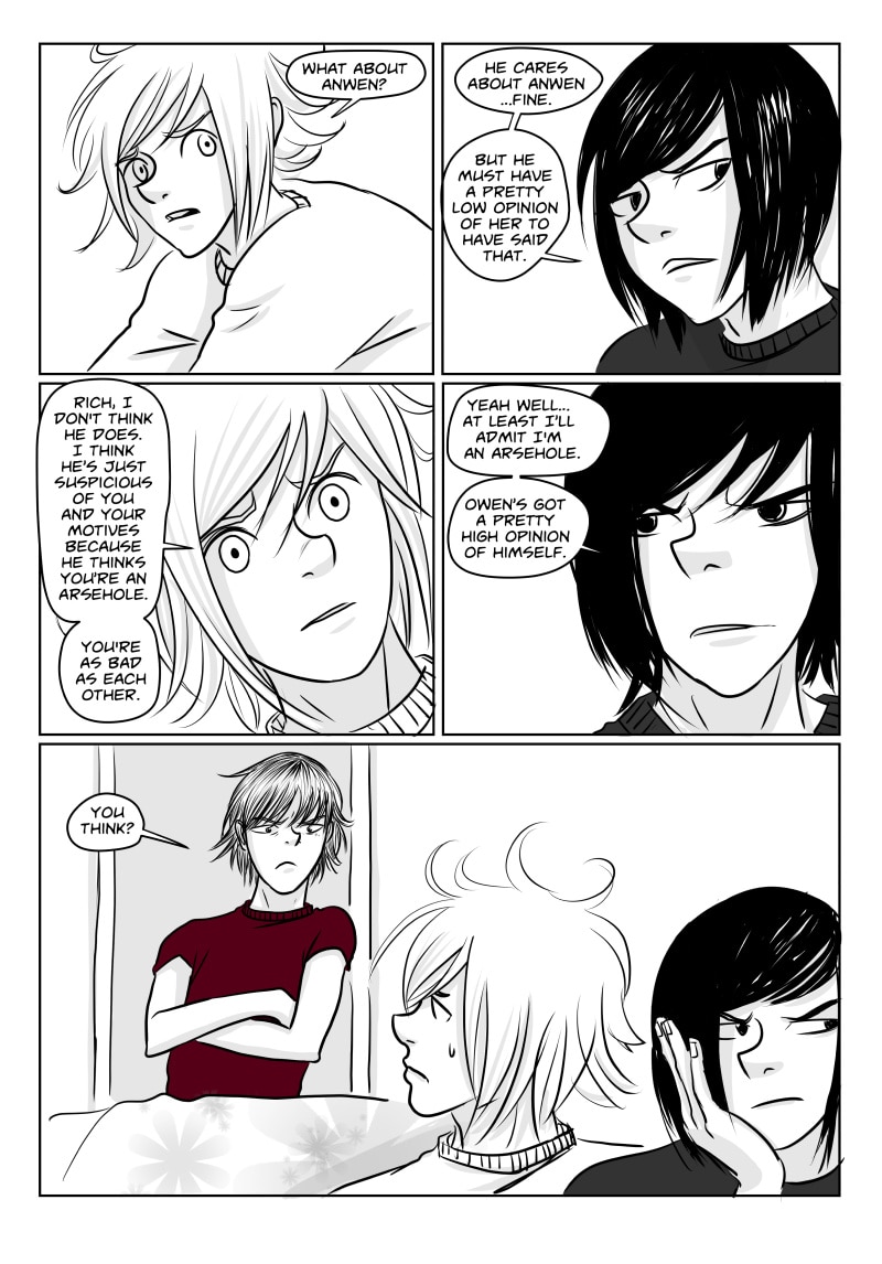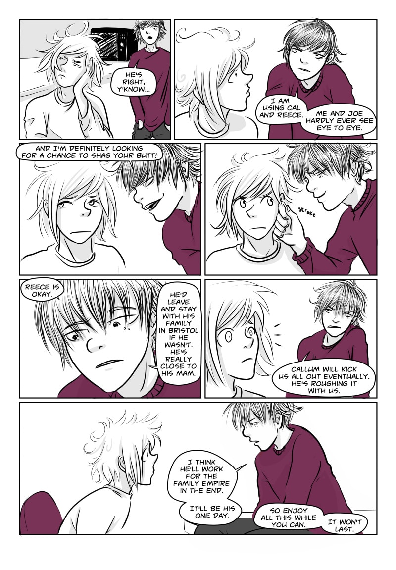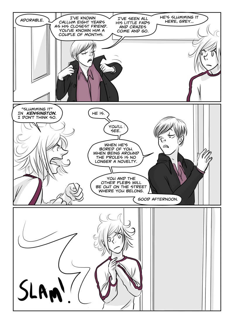 Unable to cope at college and plagued by black wisps when unhappy or stressed, Avery runs away to London with his younger brother Richey . There they briefly stay with their protective older brother Alan who is distracted by his final exams, and meet a motley crew of individuals. Avery finds himself attracted to gorgeous, doe eyed Callum and Richey becomes enamoured by the aqua-haired Anwen. However Avery still sees the Black clouds, in fact they might even be getting worse, and Richey's migraines start to get more and more severe.