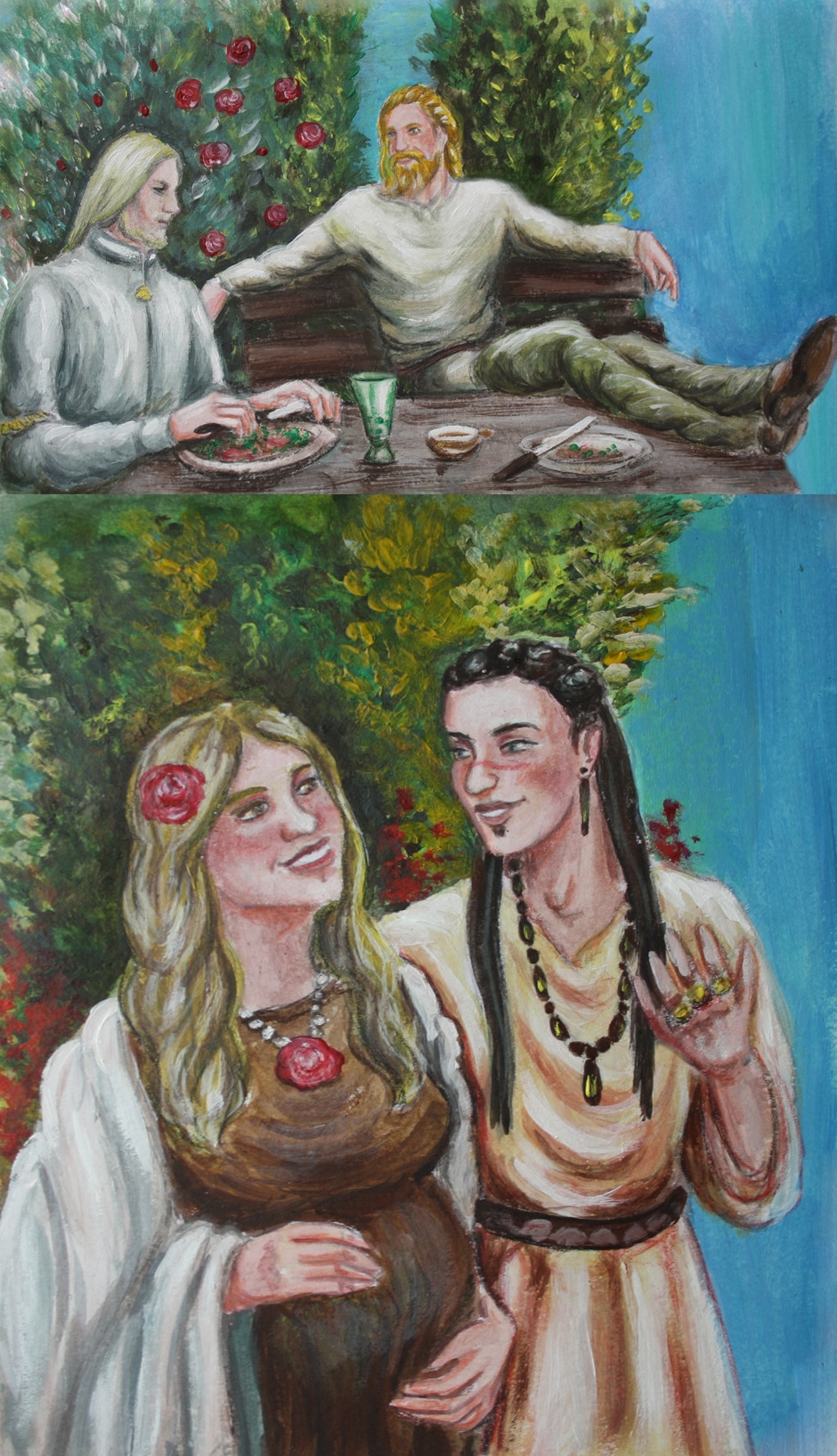 Eyolf's island - the final destination of their Midsummer travels - and the garden he's so proud of. Hakon can't escape his marital problems even in that lovely place. Illustration for the chapter "Island", which you can read here: https://tapas.io/episode/1578954
