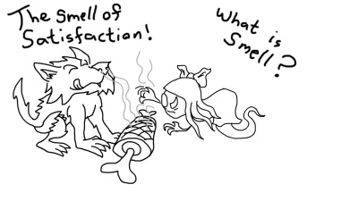 Werewolf has a really good sense of smell whereas Wraith has close to nothing. It makes for some interesting conversations. - Drawn by Scribbleface