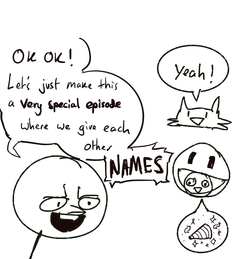 This time, we embark on a journey of names! We name name thing1; We name thing2! we name myself, and we name you!