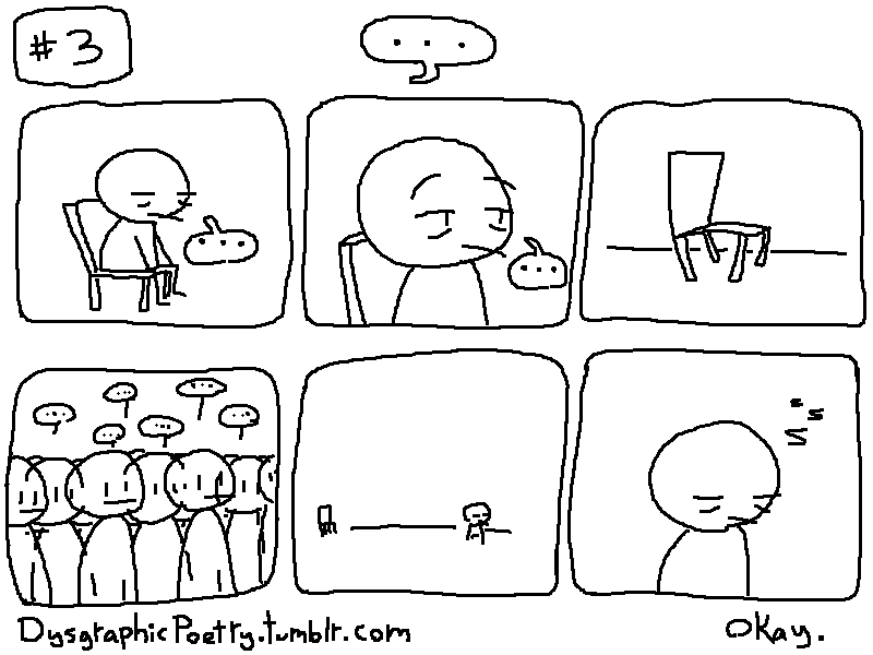 My name is Dakota, I have Dysgraphia and I make comics. Hi. Dysgraphic poetry is my work to embrace my disability as something beautiful and enriching, rather than limiting. Dysgraphia makes it difficult to write, and draw, so I choose to think that my making comics anyway is an act of self-love and defiance. Dysgraphic poetry will cover a wide range of topics including queerness, disability, and classism. Thanks for reading! #Dysgraphia #Dysgraphic #Dysgraphicpoetry