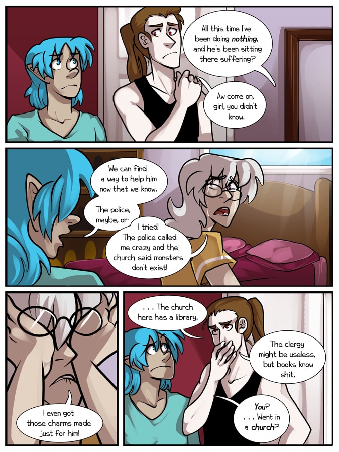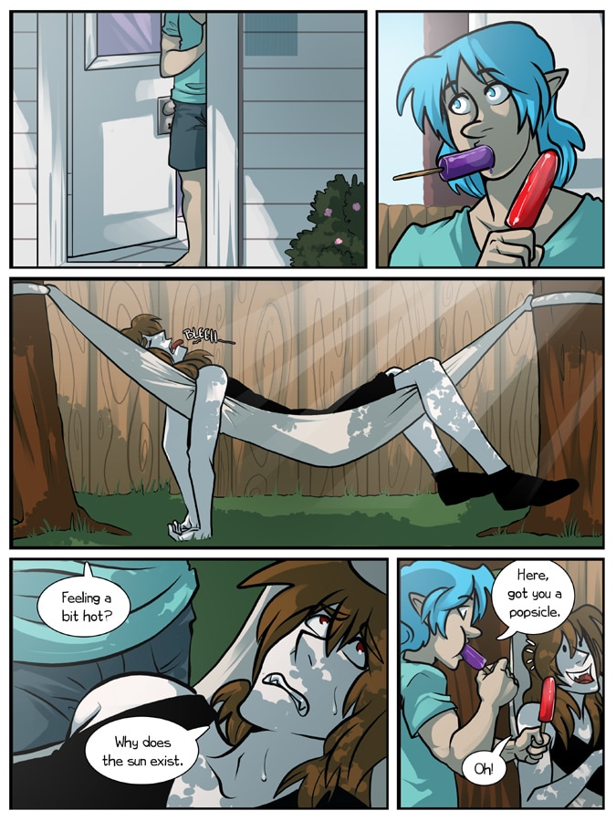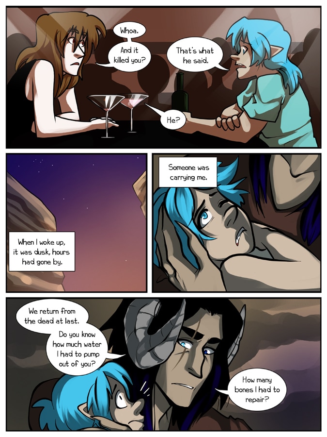 Ambrosium is a slice of life fantasy comedy. The story follows the lives of many people, all dealing with their demons. Some more literal demons than others.