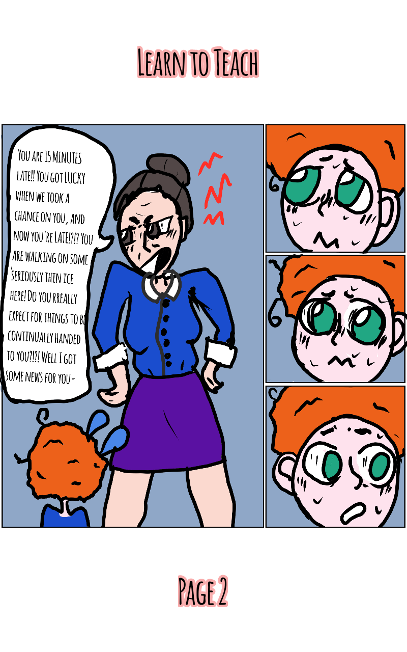 For those of you still here, Learn to Teach follows the story and growth of an anxiety-ridden teacher named Thomas Samil (or Mr. Samil as he is called by his students) in a Christian, all-girls school. His students don't respect him, along with his coworkers as he is a new teacher and the first male personnel to join this school. Things continue on like this until he meets a young girl sitting alone at lunch, he gets to know this girl and she says something that gets the ball rolling on a heartwarming, saddening, and motivating story about self-improvement and mental health.