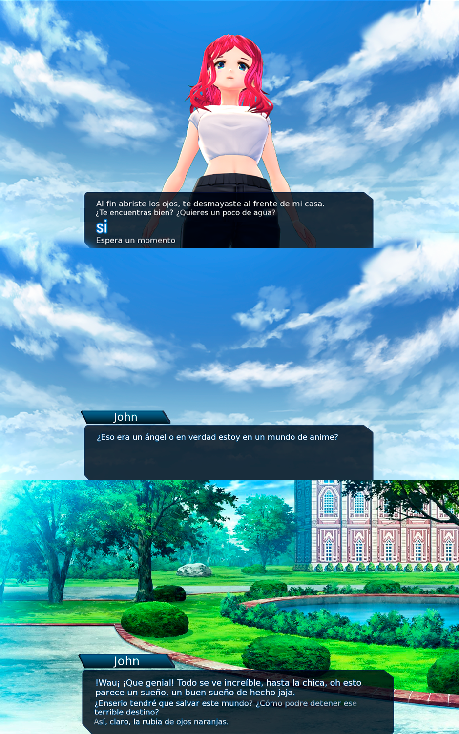 Esta novela visual te hará vivir lo que pasaría si tu viajaras a una dimensión de anime. El jugador descubre un programa capaz de transportar su mente humana a una dimensión anime, este programa pide la ayuda de un humano real ya que la dimensión anime fue destruida sin querer por un invento, la maquina le plantea que puede enviar un avatar al pasado pero necesita tu mente para que lo controles, el objetivo es convencer a la inventora de que aquella maquina fallara y sin querer la chica abrirá una dimensión que contiene una energía devastadora que acabara con su mundo, el romance y la comedia van de la mano, pero el misterio y el suspenso son parte de esta historia, no te pierdas este viaje.