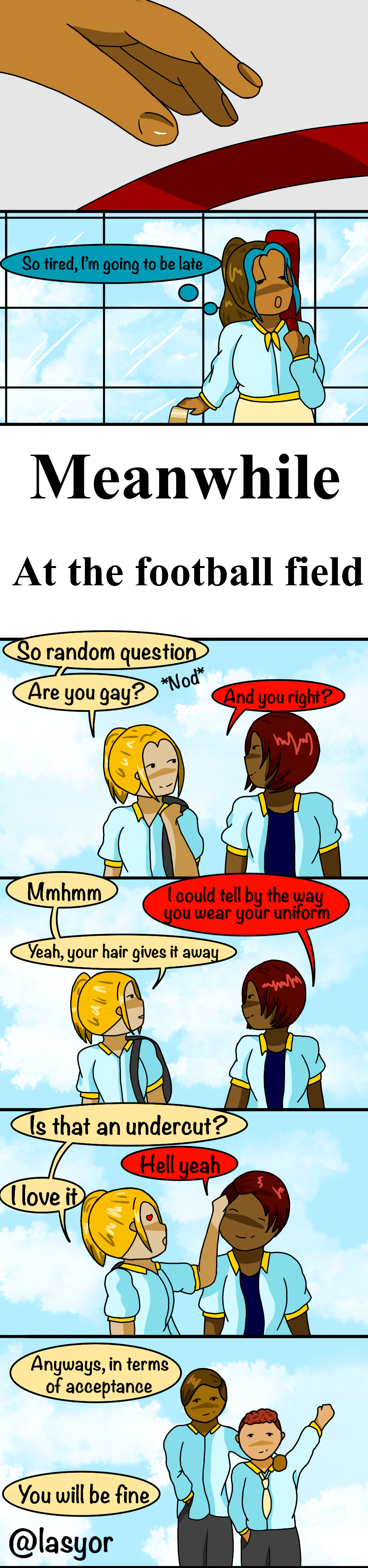 Relate. I was the only gay girl at my school too. It was shitty. Great comic so far! 👌