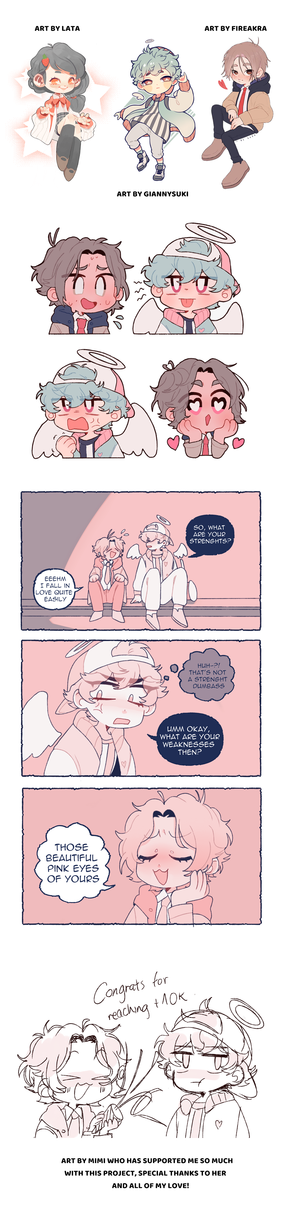 This isn't an update yet, but I just wanted to thank everyone for all the support this project has been getting! I hope everyone had a good year, let's give our best with 2020! I wanted to show all the beautiful art a lot of talented artists have made! You can find all the artists on their instagram. -Cloilou: https://www.instagram.com/cloilou/ -Sweetpea Momote: https://www.instagram.com/sweetpeamomote/ -HeyAngel: https://www.instagram.com/heyangelsc/ -Fujishoka: https://www.instagram.com/monnw.desu/ -Housset: https://www.instagram.com/housset_art/ -Mmrczz https://www.instagram.com/mmrczz/ -Shinon https://www.instagram.com/shinon_sy/ -Bluepig https://www.instagram.com/bluepigart/ -Lata https://www.instagram.com/donut.from.mars/ -Giannysuki https://www.instagram.com/giannysuki/ -Fireakra <3 https://www.instagram.com/fireakra/ -Mimi https://www.instagram.com/mimi_2399/ You can also read her beautiful webcomic here on tapas! She's super talented and she deserves the world! https://tapas.io/series/Chocolate That's all! Thanks everyone for the beautiful art!!! Either it's gift art or commission art it makes me really happy to see so much art of them! From now on I will continue to update the webcomic :) be alert!