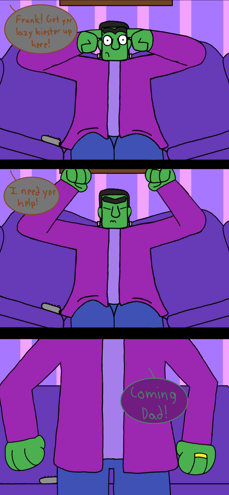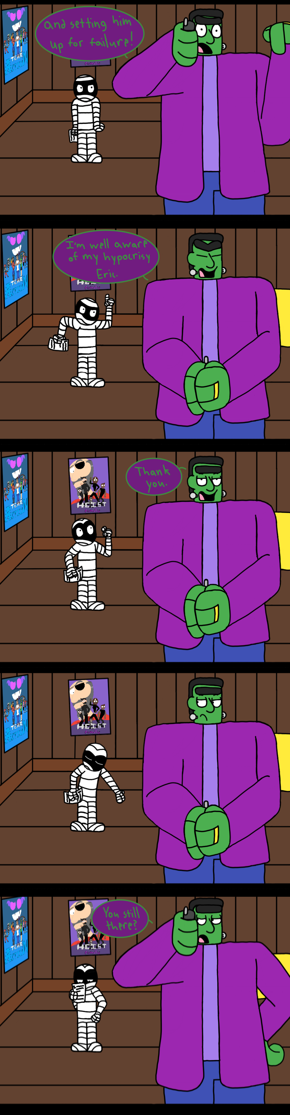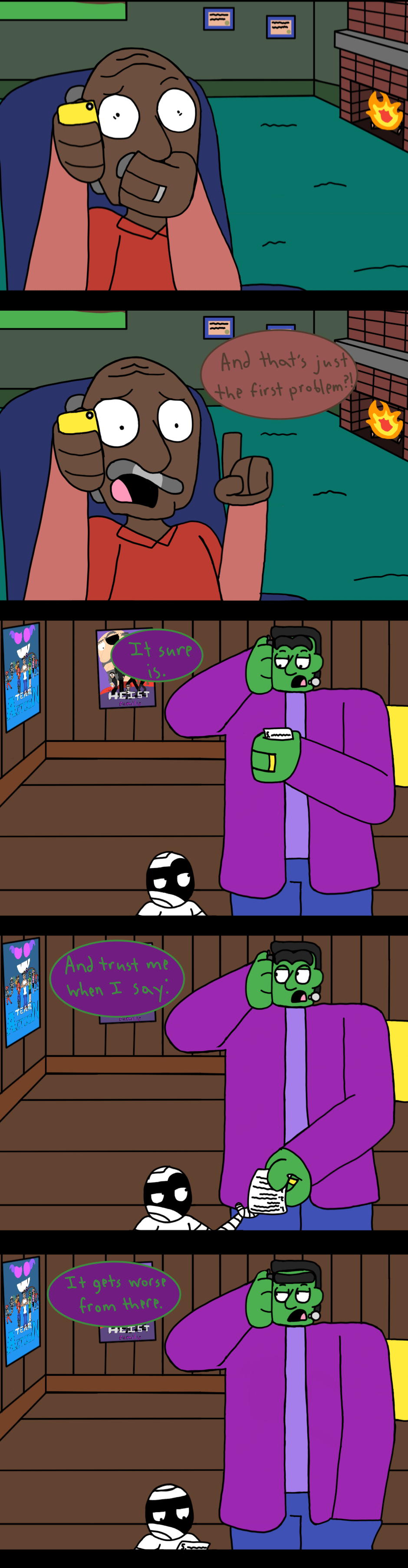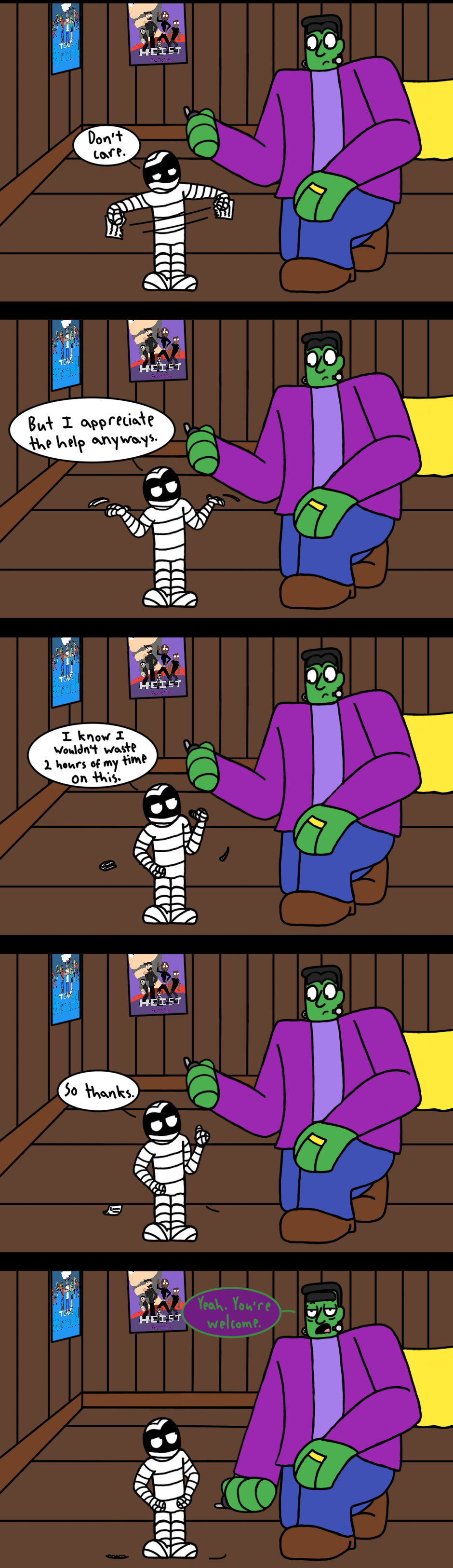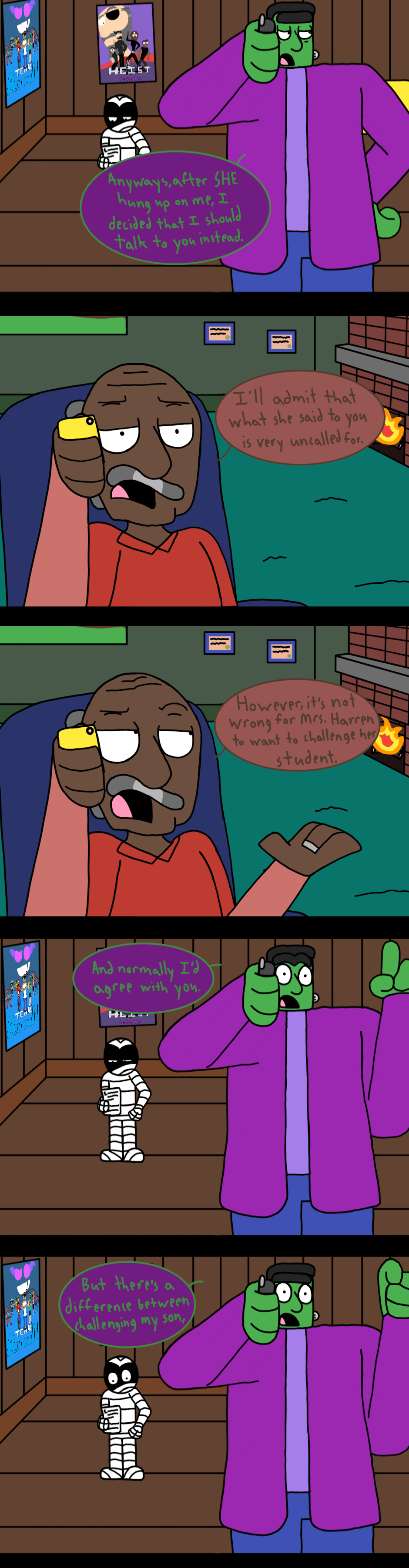 Note: I know that the odds of happening in the real world are less than slim to none, but here's the thing: I've created a world where a Frankenstein monster is helping his son, who is a mummy, with his math homework. I think I'm allowed a little leeway on what does and does not seem possible.