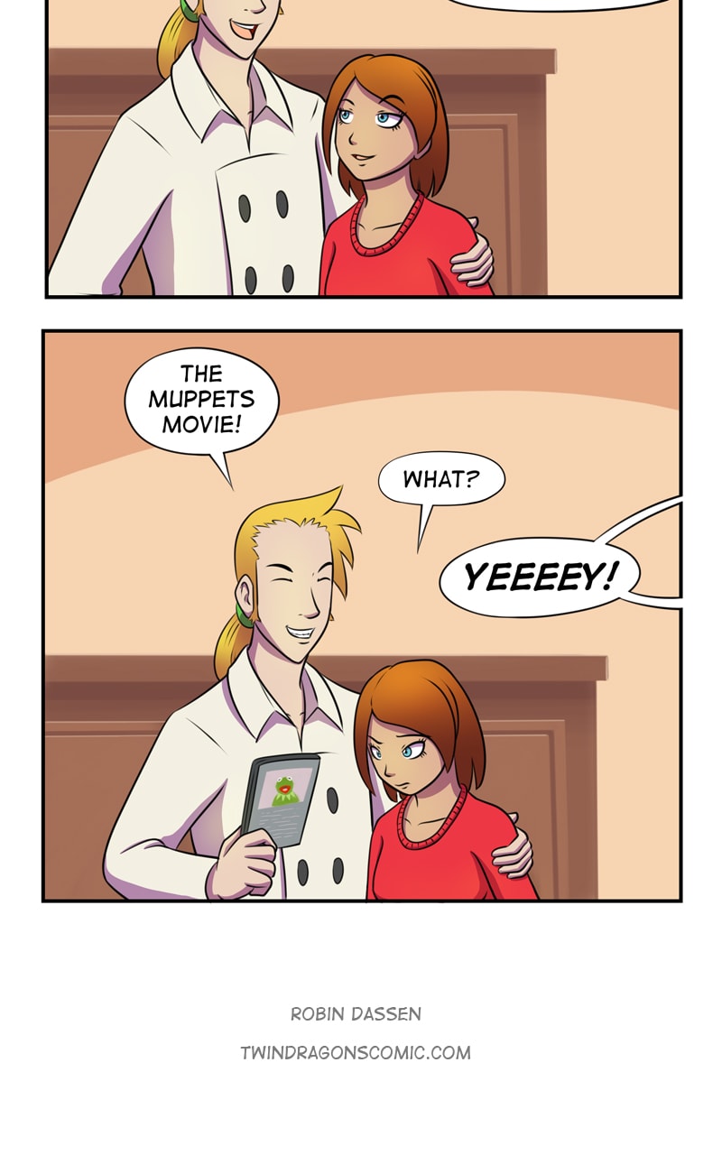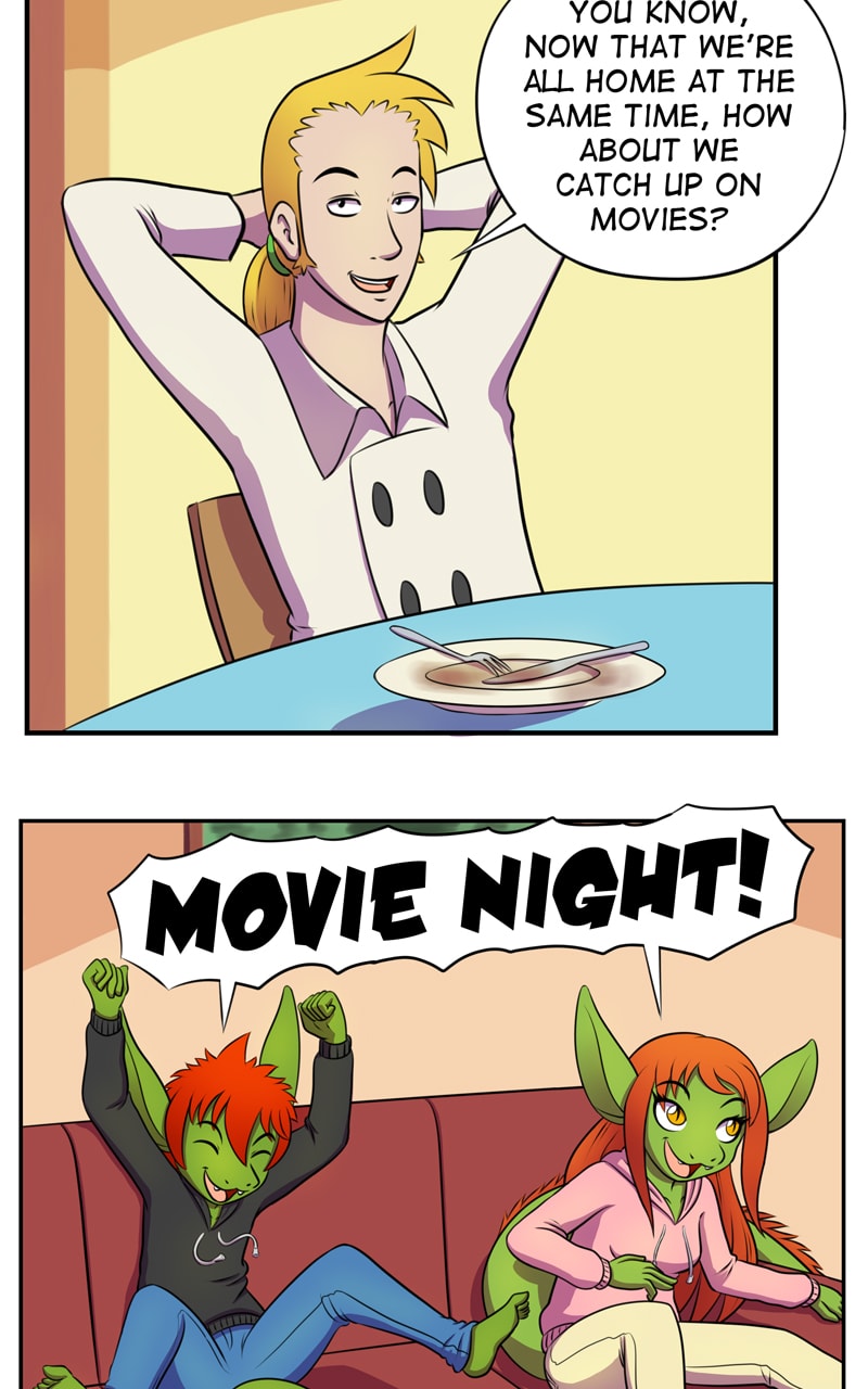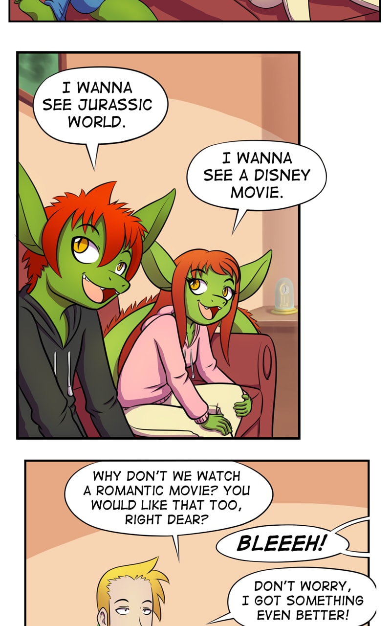 We learn something about the family today. First is that their dad likes silly movies. Second is that the twins share his taste. Third is that their mother doesn’t XD
