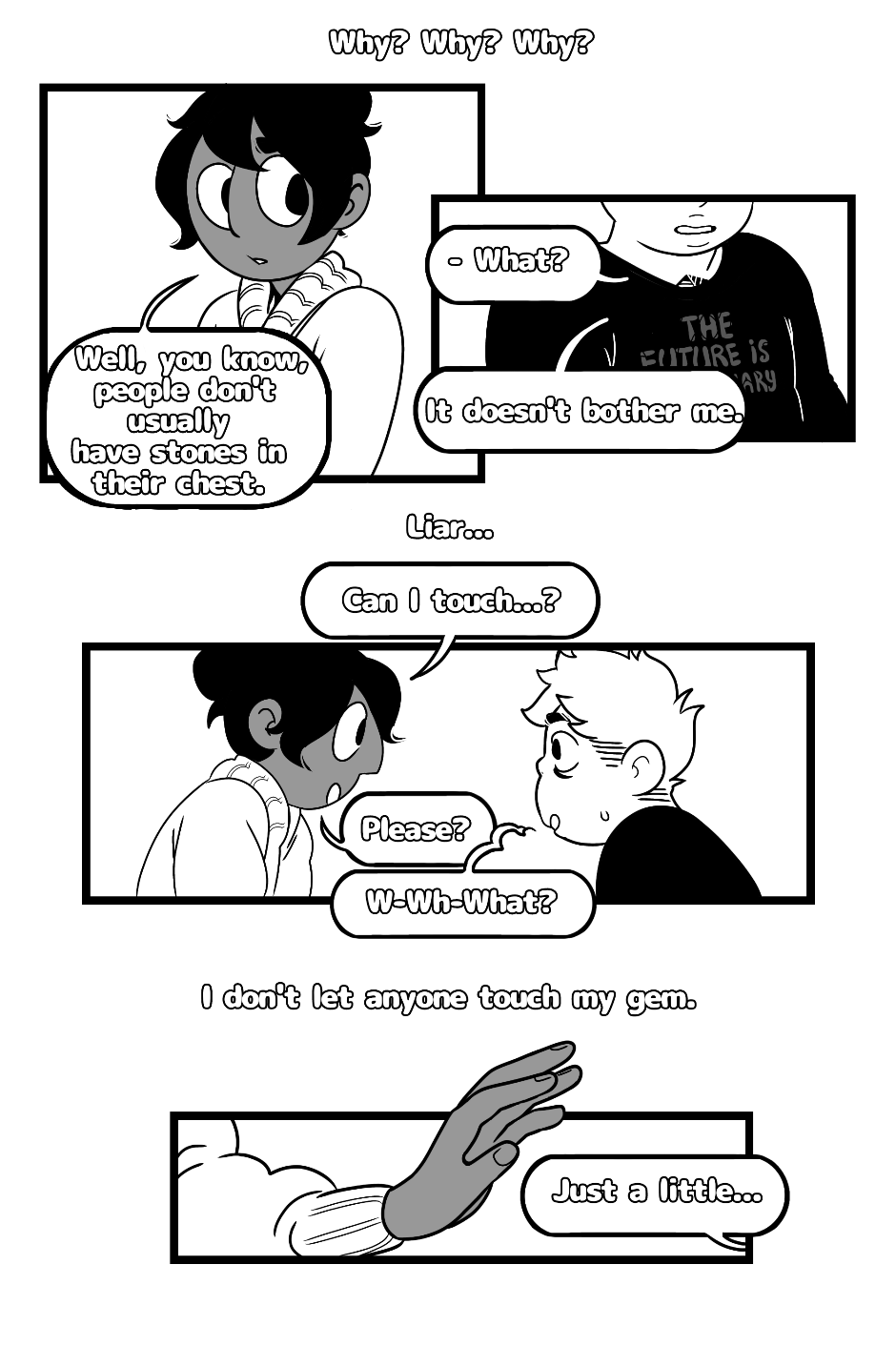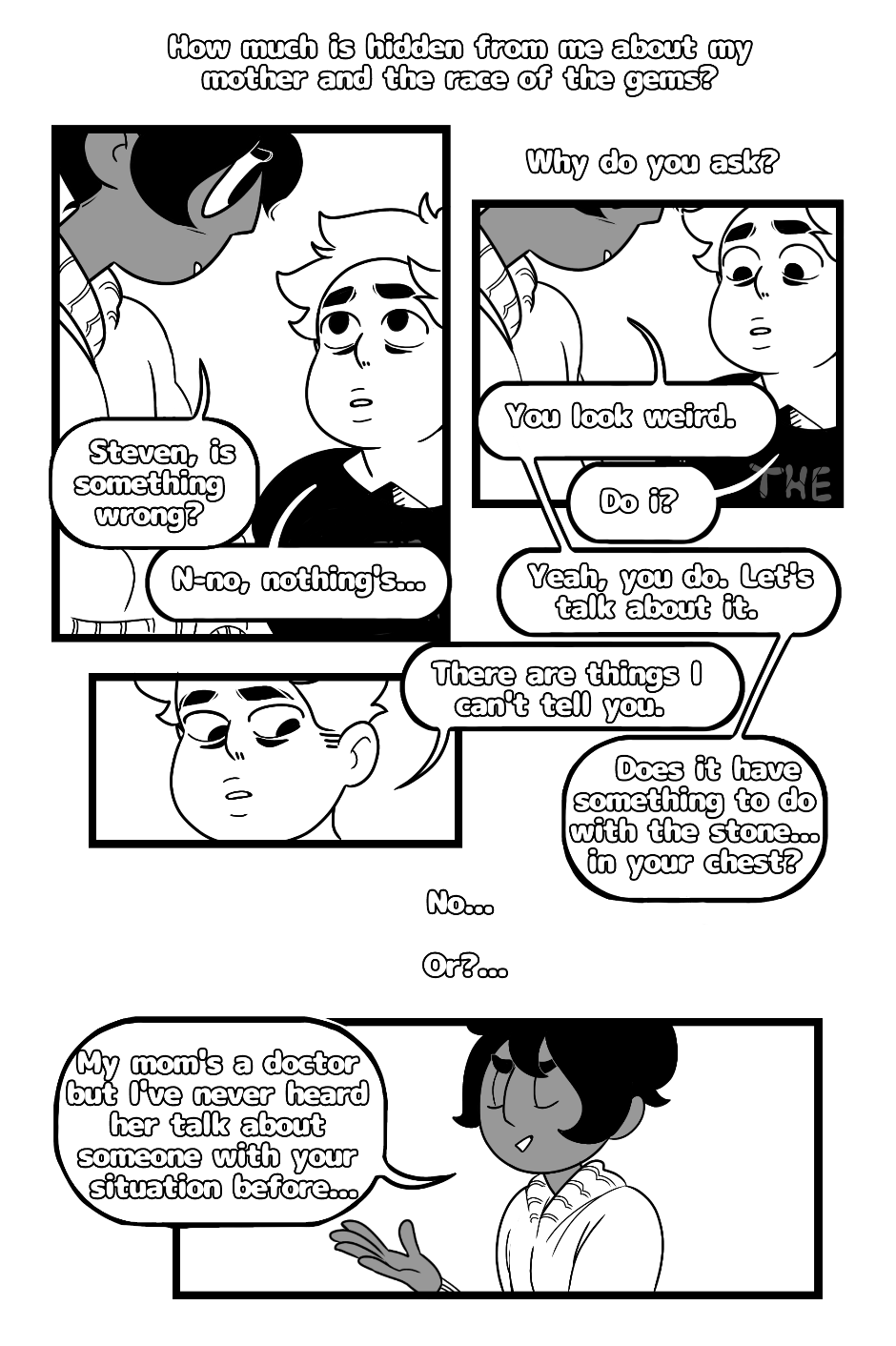 Steven is a little boy who lives in a ruined temple with three gems: Lapis, Peridot and Jasper. Steven is a gem, too, but his gemstone, his mother's gemstone, is different. For 14 years he lived in his little world, but now everything is beginning to change...