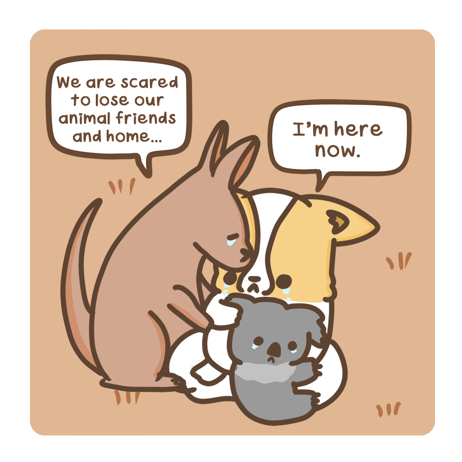 Corgiyolk is devastated to see his animal friends suffering as a result of the fires. An estimated half a billion animals have perished because of the bushfires in Eastern Australia.