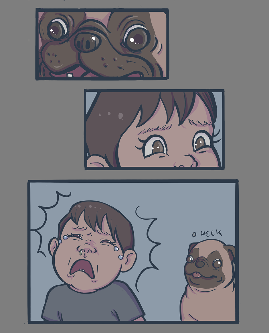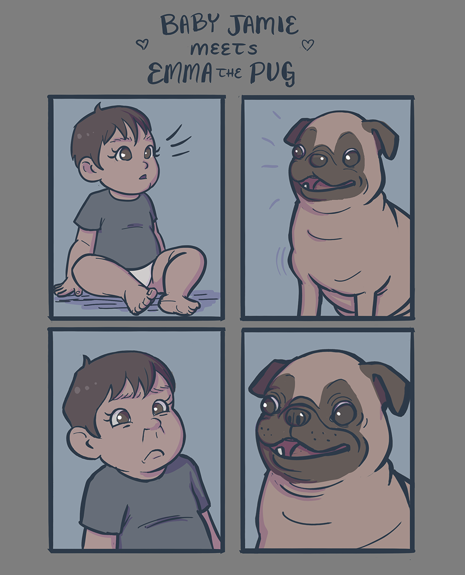 Anyway, this is based on true events, featuring our nine-month-old nephew Jamie, and Bobbi's family dog, Emma. We're not sure if it was her looks or her excited grunty sounds, but Jamie was Not Having It. He likes all other dogs, though!