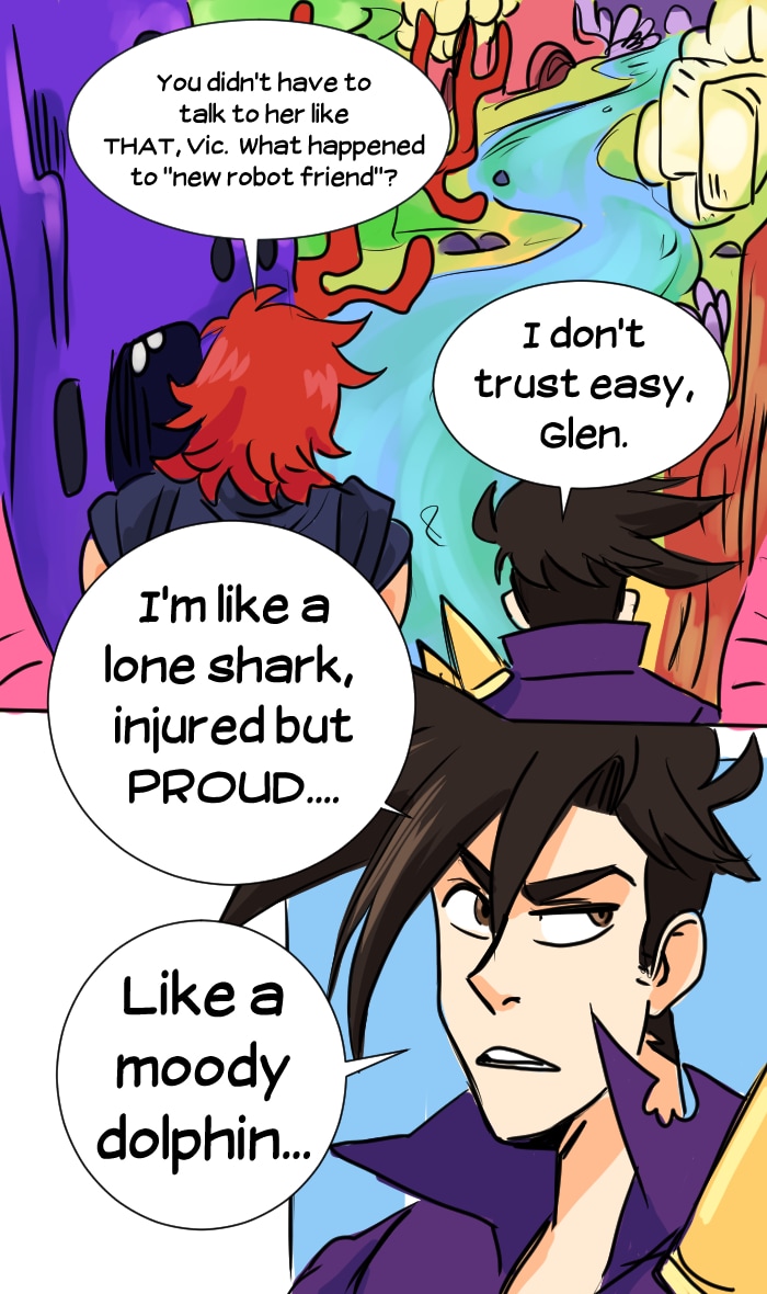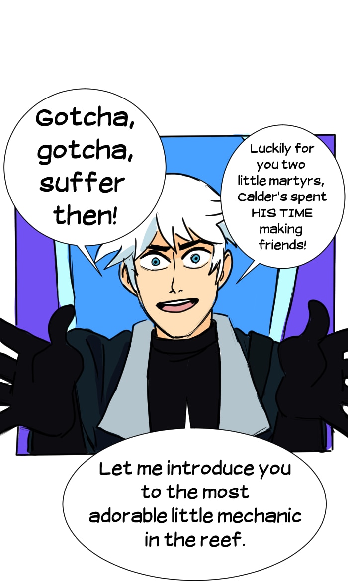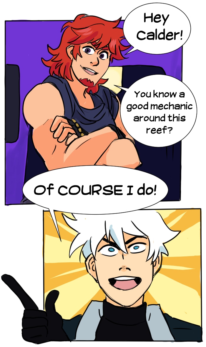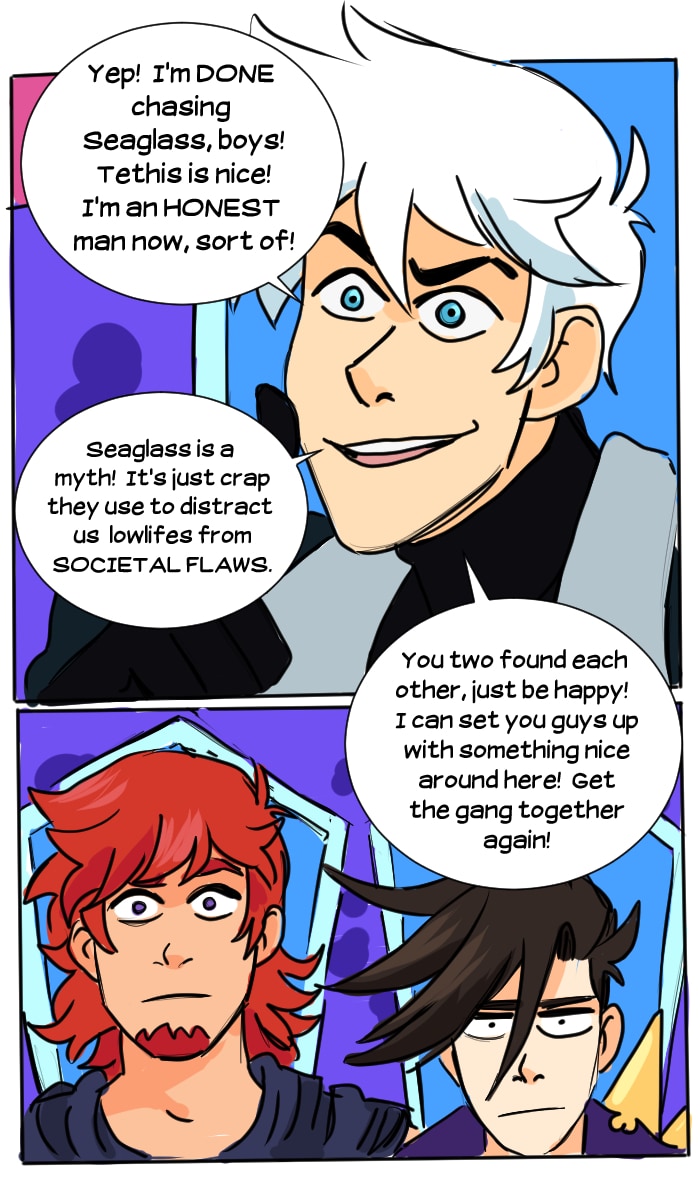 In the distant future, Victor Imai runs the least successful space pirate crew in the galaxy. Hot on the trail of the mythical artifact "Seaglass", Victor and his tiny crew combine their braincells to make the impossible possible. Updates every Friday, with extra pages throughout the week depending on production speed! Join the Seaglass discord! https://discord.gg/7Gdaer5