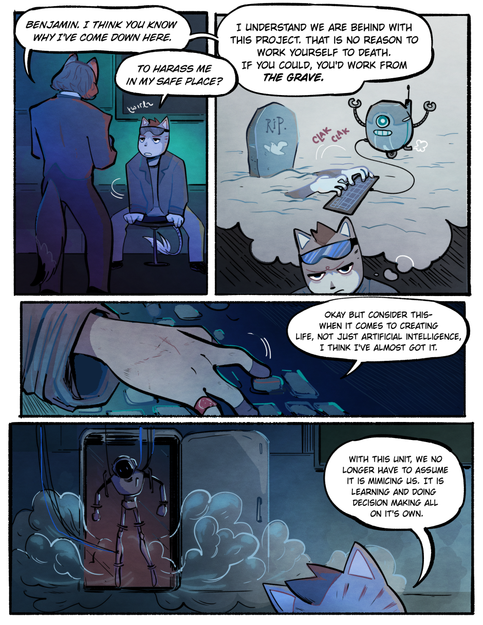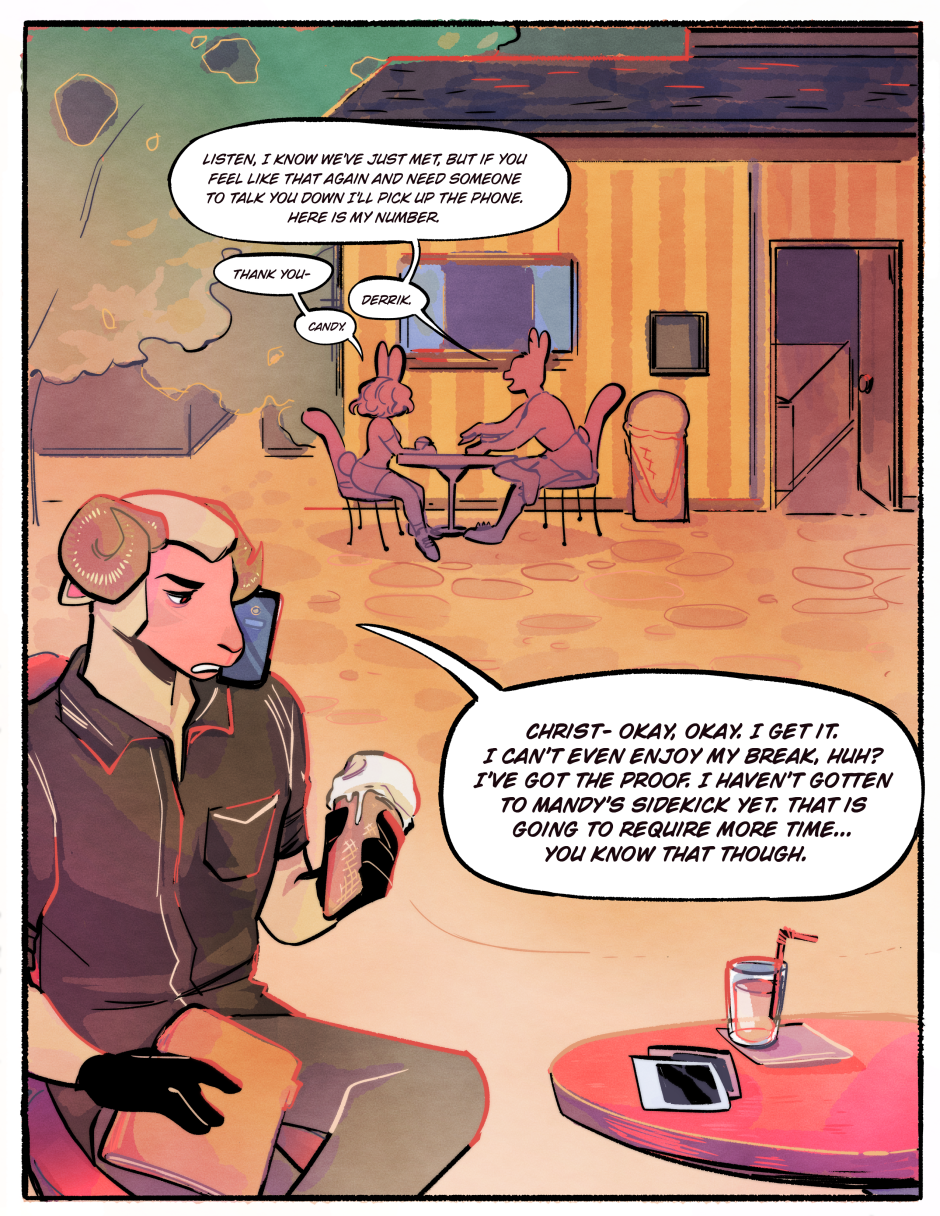 Alright lets see..... We see Roy again, introduced back in the flashback showing what he and Grumbletoon are up to a few chapters ago-- We wrap up the scene with Candy for now-- And we meet the targets of future conflict. We will be back to Doc and Zippy in a few pages!