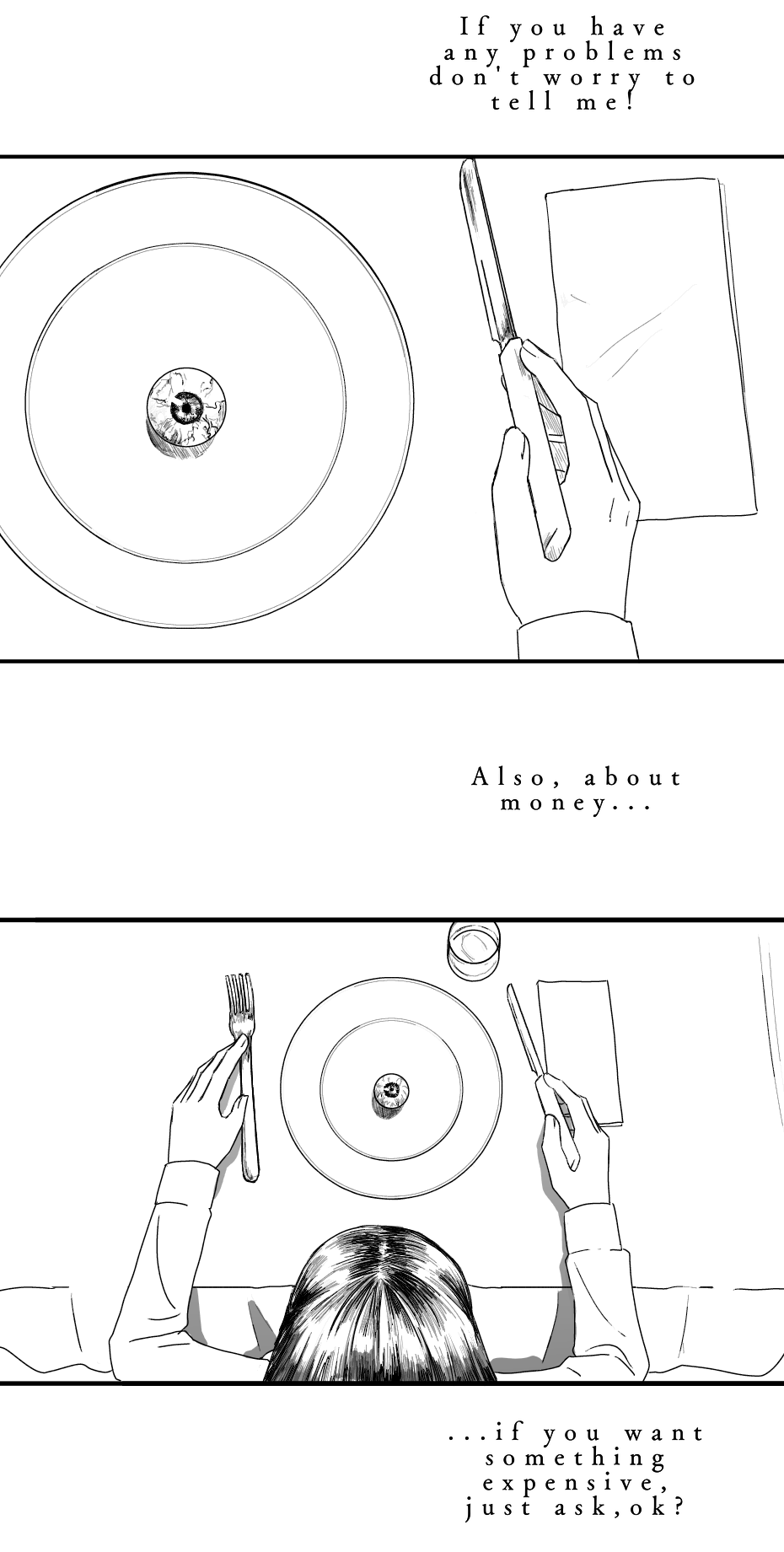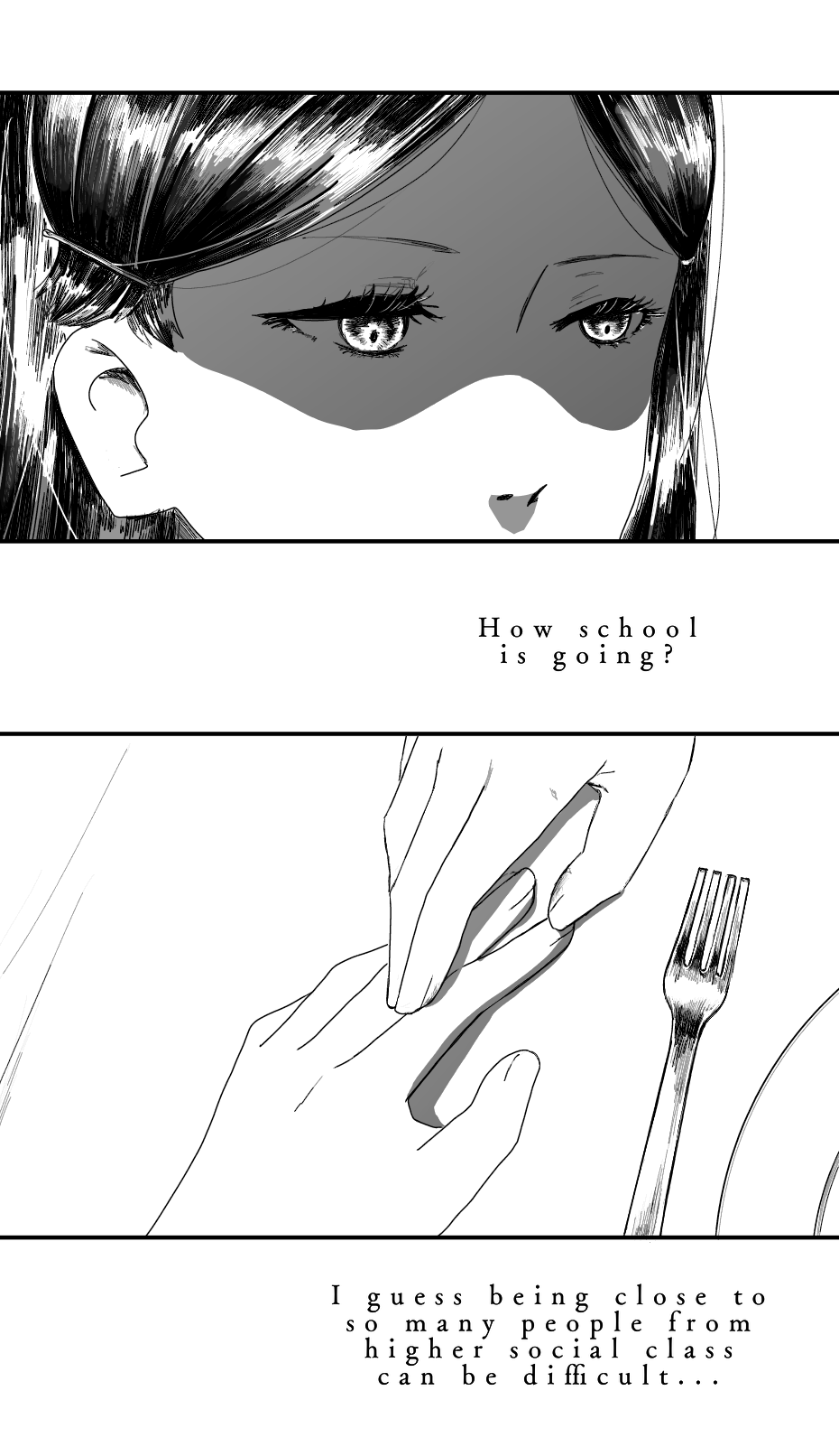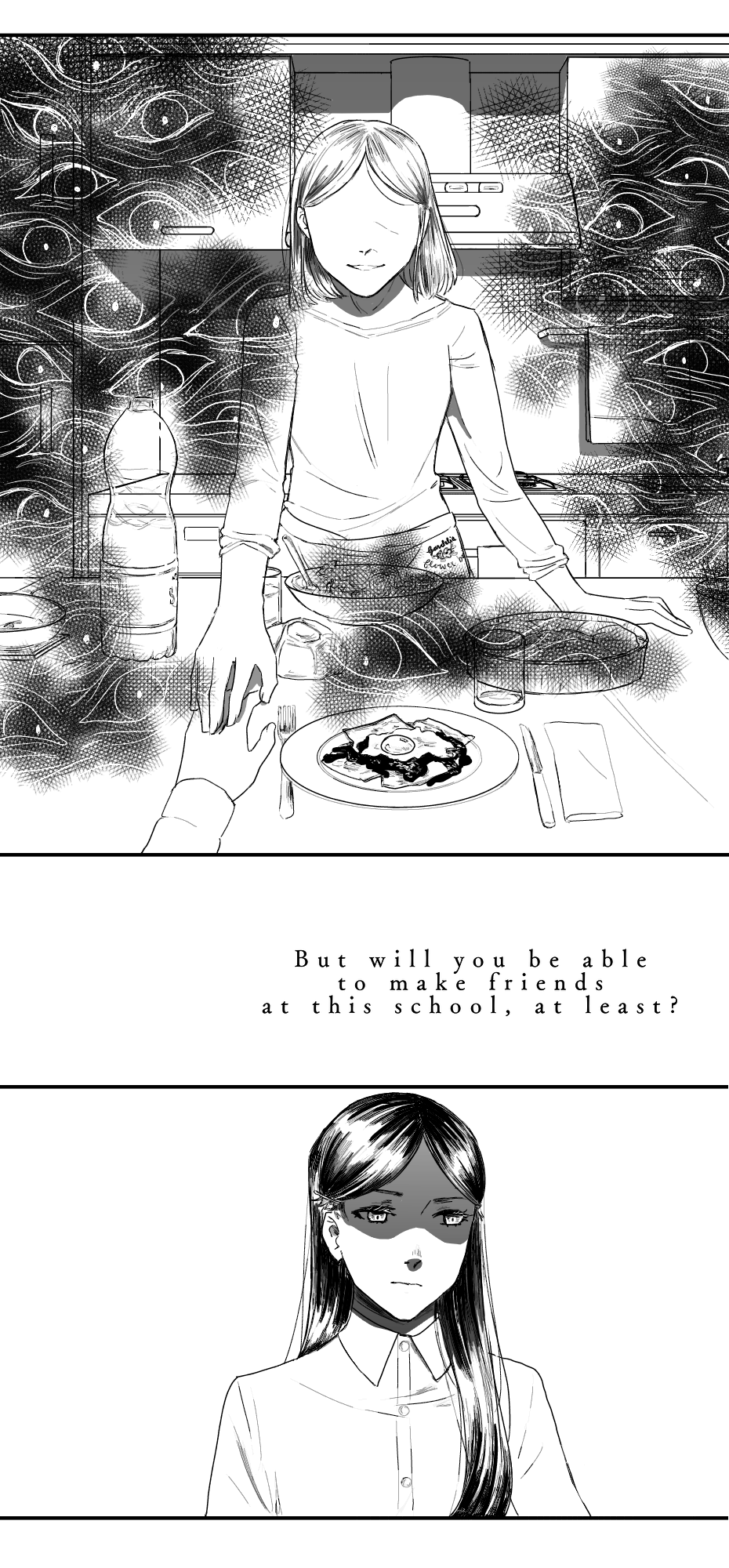 wonderful chapter as always! I couldn’t help but notice the scratched out face in the family photograph her father I’m presuming. Also I know it’s a cliche interpretation but since the eye is usually depicted as the window to the soul i.e. truth I feel like her mother and the people around her are being deceptive since their eyes are not being shown.