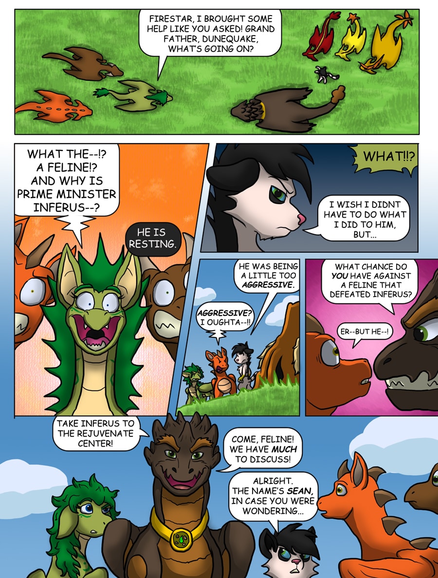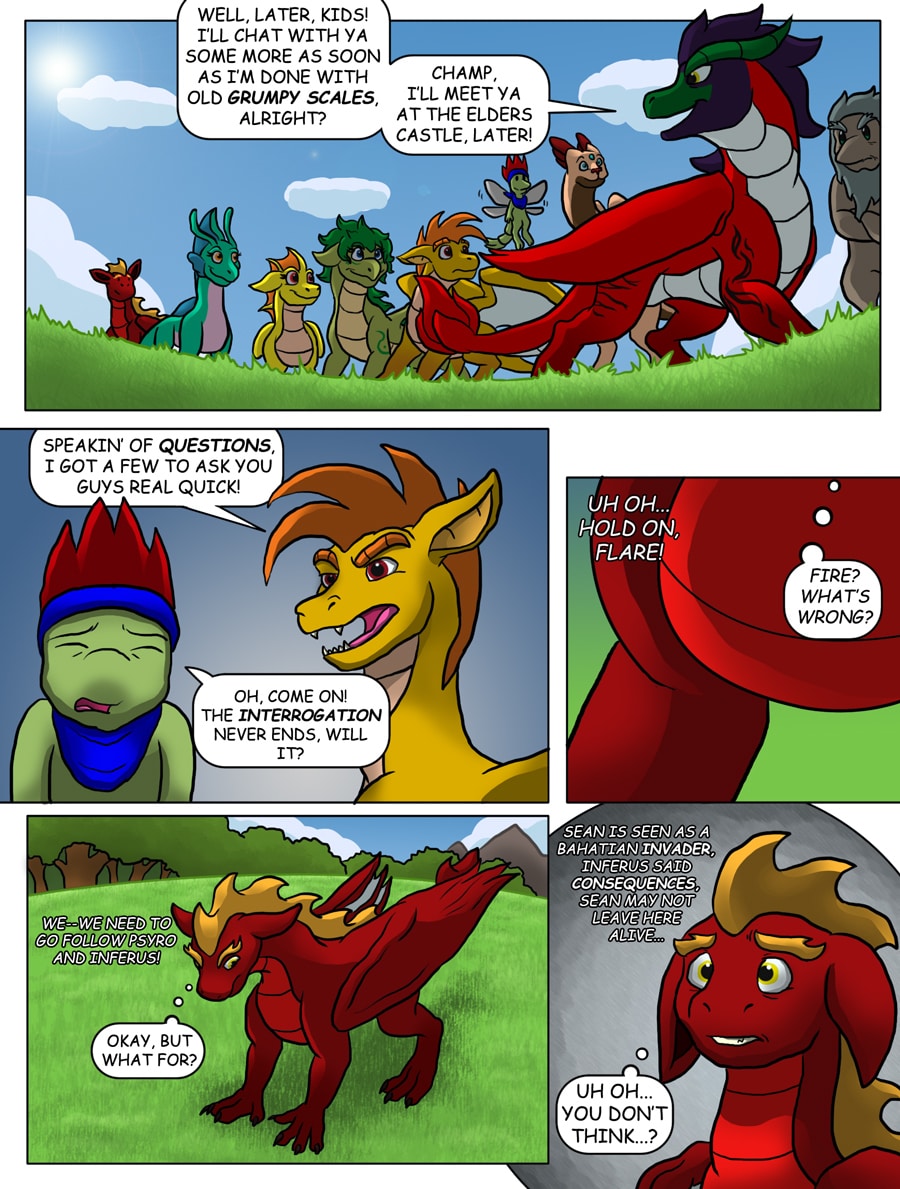 In this fourth installment of the Flare and Fire saga, Sean will be a bit more in the focus point of the story. As Elder Mickey, Psyro's mentor and "conscience" have a little pep talk with Psyro, Flare and his friends give Sean a little tour of the Dragon Lands. The tour ends abruptly as the Prime Minister of Dragonia catches Sean, a dragon slayer with a bunch of young dragons. Bahatian's and Dragonians have been at war for a long time and Sean, who is from bahatiana will need some friends to stick by his side for revealing himself in a dangerously hostile territory.