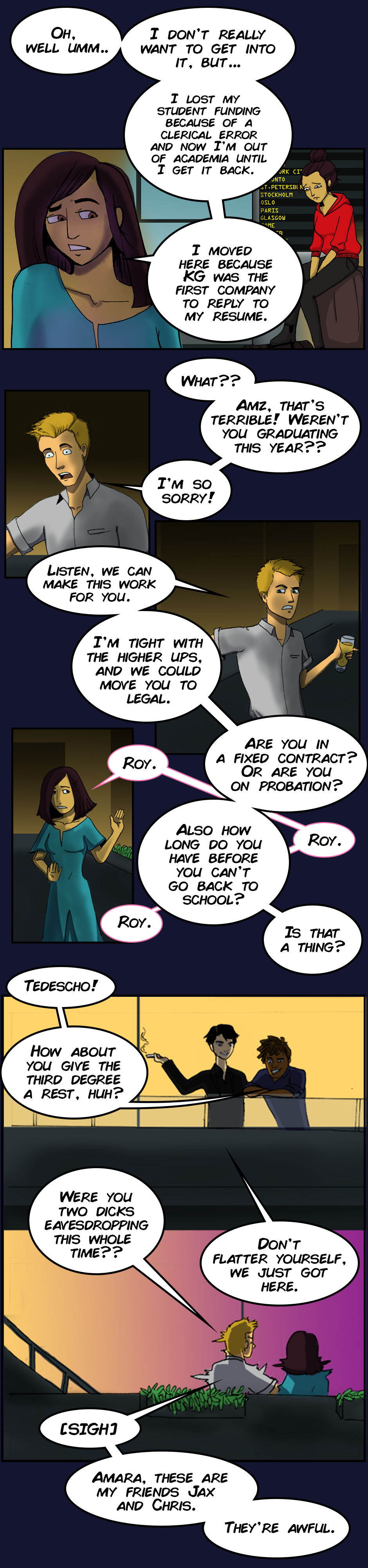 Amara's having a rough year - her student loan is revoked and she has to take a job at an insurance company. On top of that it turns out her ex-boyfriend is going to be her boss!