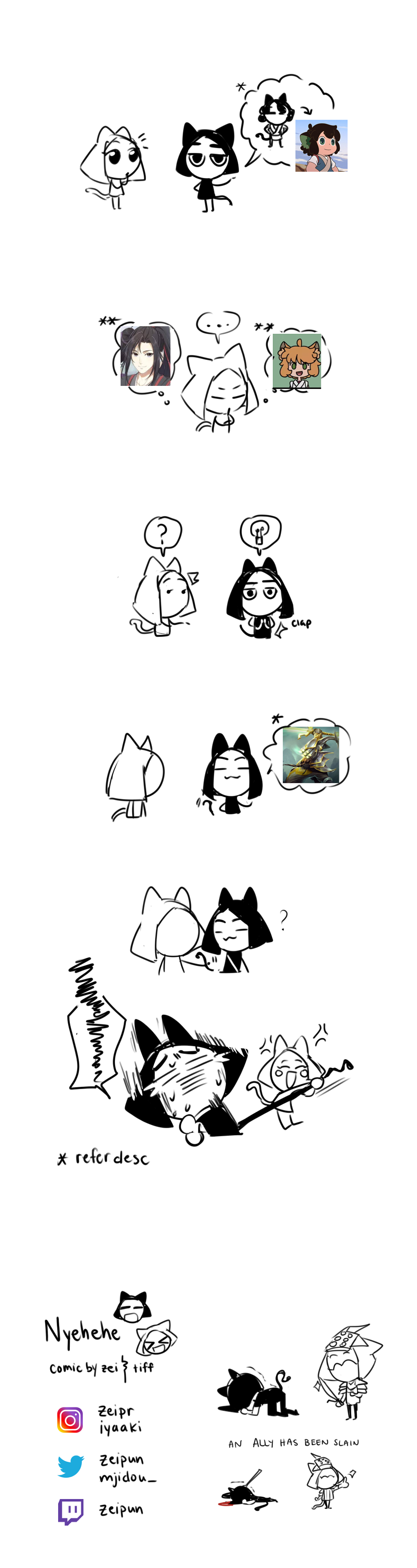 a joke about if ayi cosplayed... suggested master yi bc ayi = master yi get it.. a..yi.. master.. yi.. yi.. ok i thought it was funny cat boy = luo xiaohei, from legend of hei 6 eyed man = master yi, from LoL **wei wuxian, from mo dao zu shi **cat girl.. from legend of hei