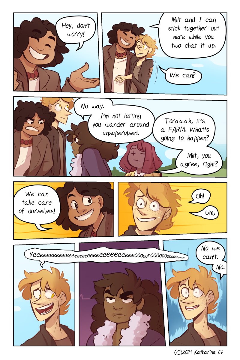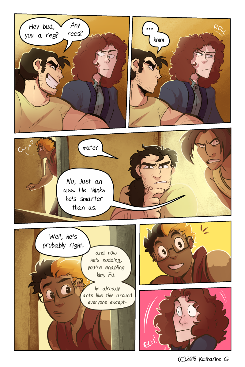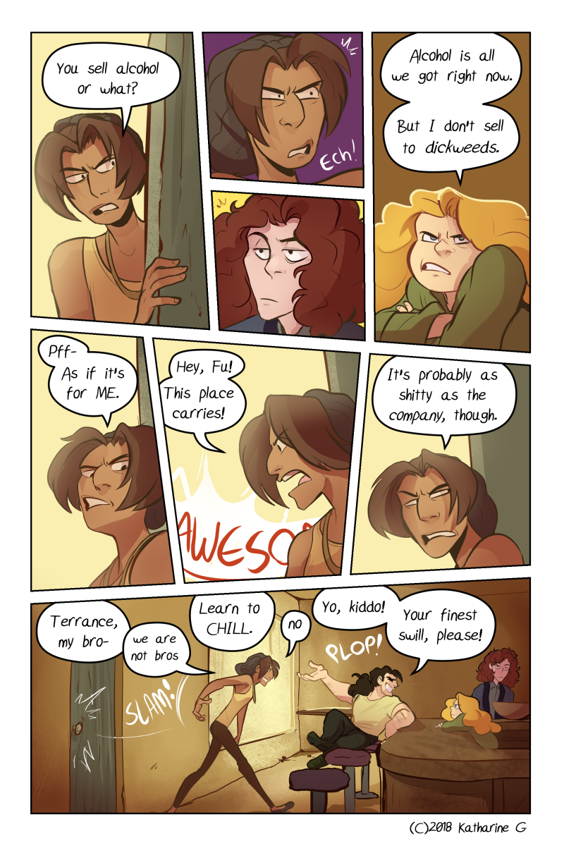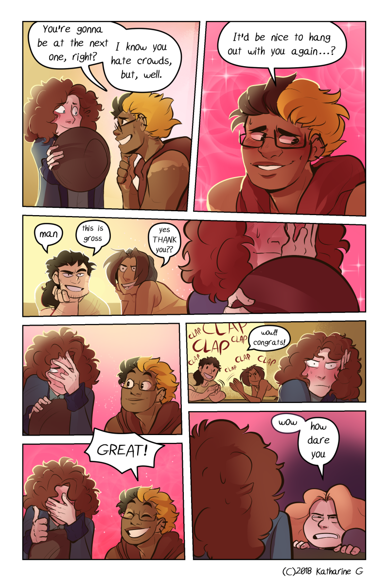 Also, you slowly pepper in your worldbuilding with natural dialogue. The correct way. But now I'm annoyed because I want to read further and figure out how your universe works but I MUST WAIT FOR THE PAGES.