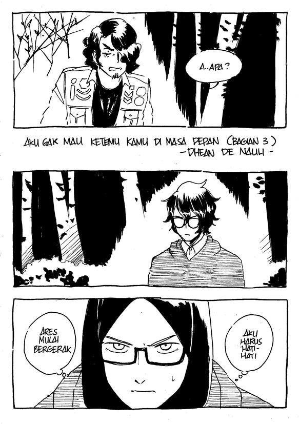 "Aku gak mau ketemu kamu di masa depan" adalah sebuah penolakan. Tidak hanya berarti untuk kamu yang di sana, karena "kamu" di sini memiliki banyak arti. Seperti halnya "aku" dan "masa depan" mana yang kita bicarakan. Karena ini soal manusia, sisi gelap mereka, dan betapa mereka yang lemah tapi angkuh luar biasa.