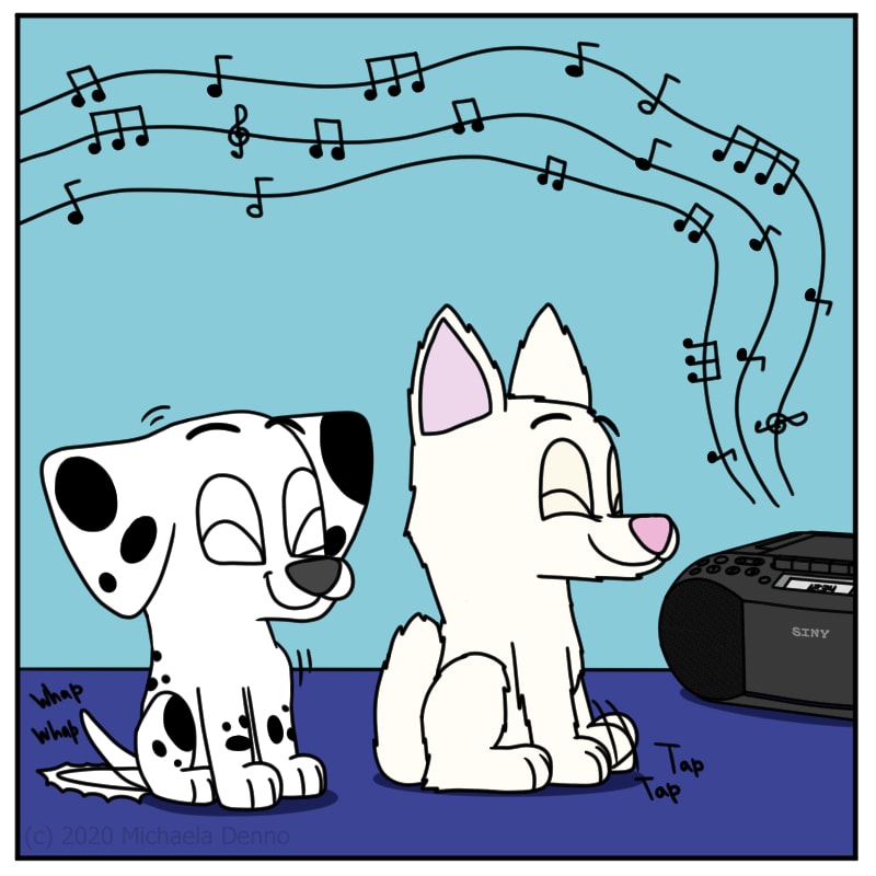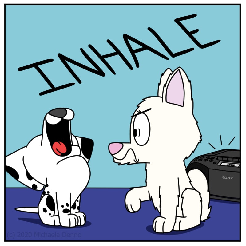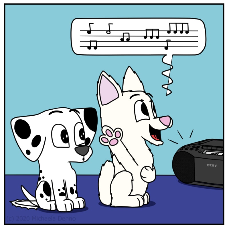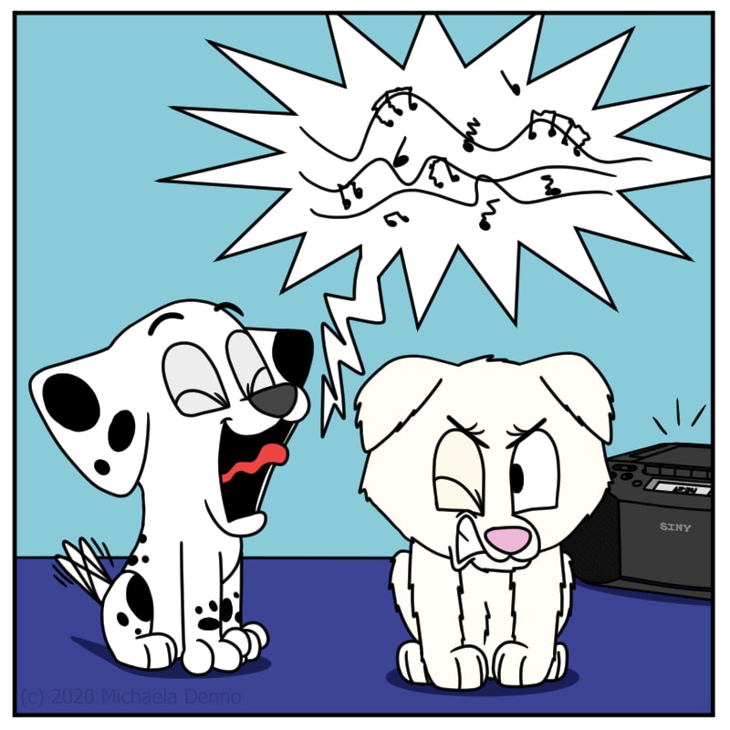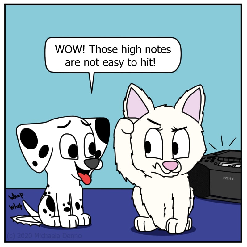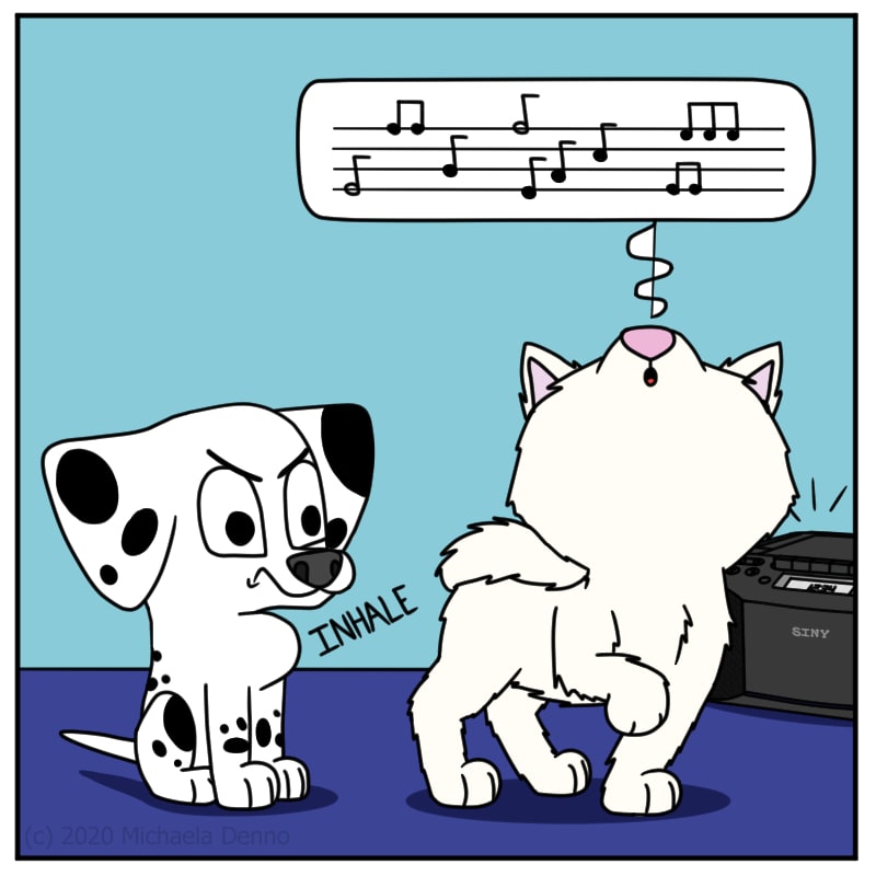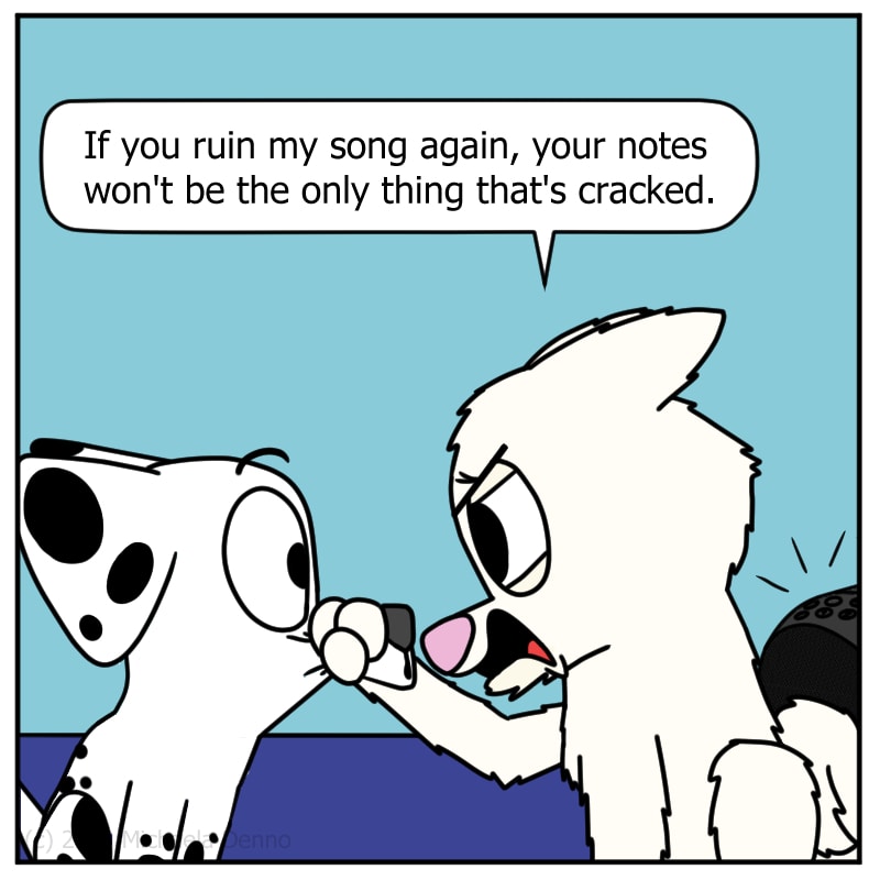 Poker tries to sing on Puff's level.