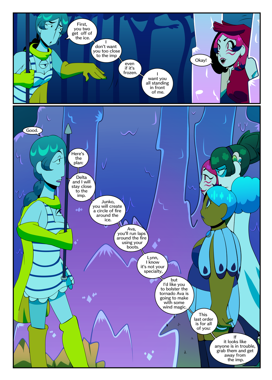 This is the first time I've had all my magic ladies visible in a shot together. Loraine was hidden by Delta when she first landed,so that time doesn't count. It was irritating trying to get everybody's height in relation to each other correct. I have a height chart, but I usually only need to focus on two characters on the chart at a time. Not all four of them