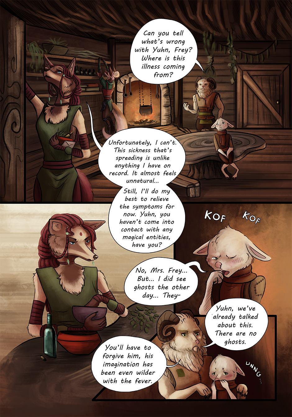In this page, we officially meet a little character that will quickly become one of my favourites, no doubt! A sick little sheep boy, whose father doesn't seem to understand his fears...