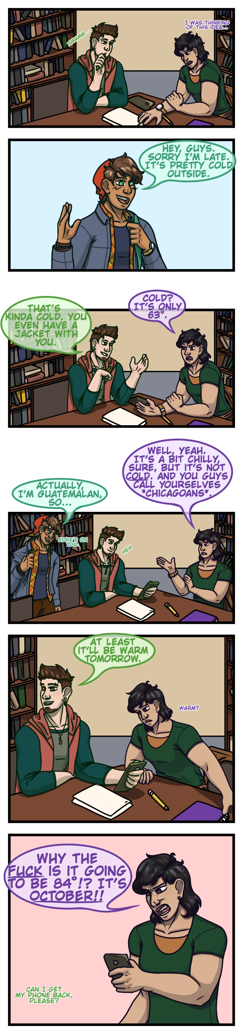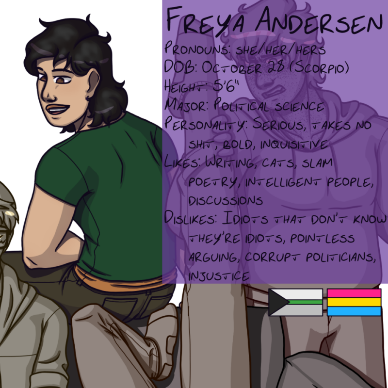 This one's kinda late. I actually did draw it in October, but got preoccupied with Inktober and forgot to post it. Now it's January. I'm good at schedules. Also, we've officially met all 9 of the main characters. Yay!