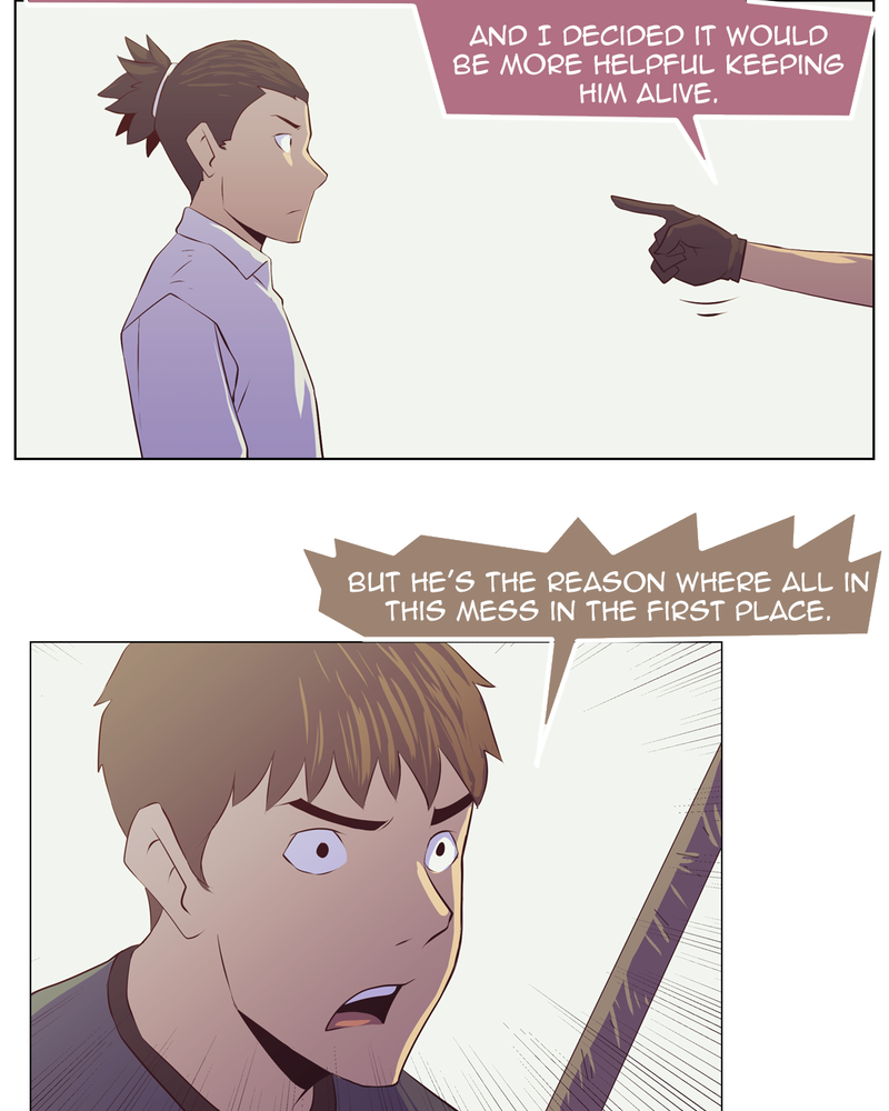 the pacing seemed off a bit at the end, and the guy seems way to calm for someone who's being called a traitor and threatened with death.... Over all it seems like an interesting story and I'm excited to learn why this all started! good job, and don't over do it with the uploads, quality over quantity and personal health over an update XD