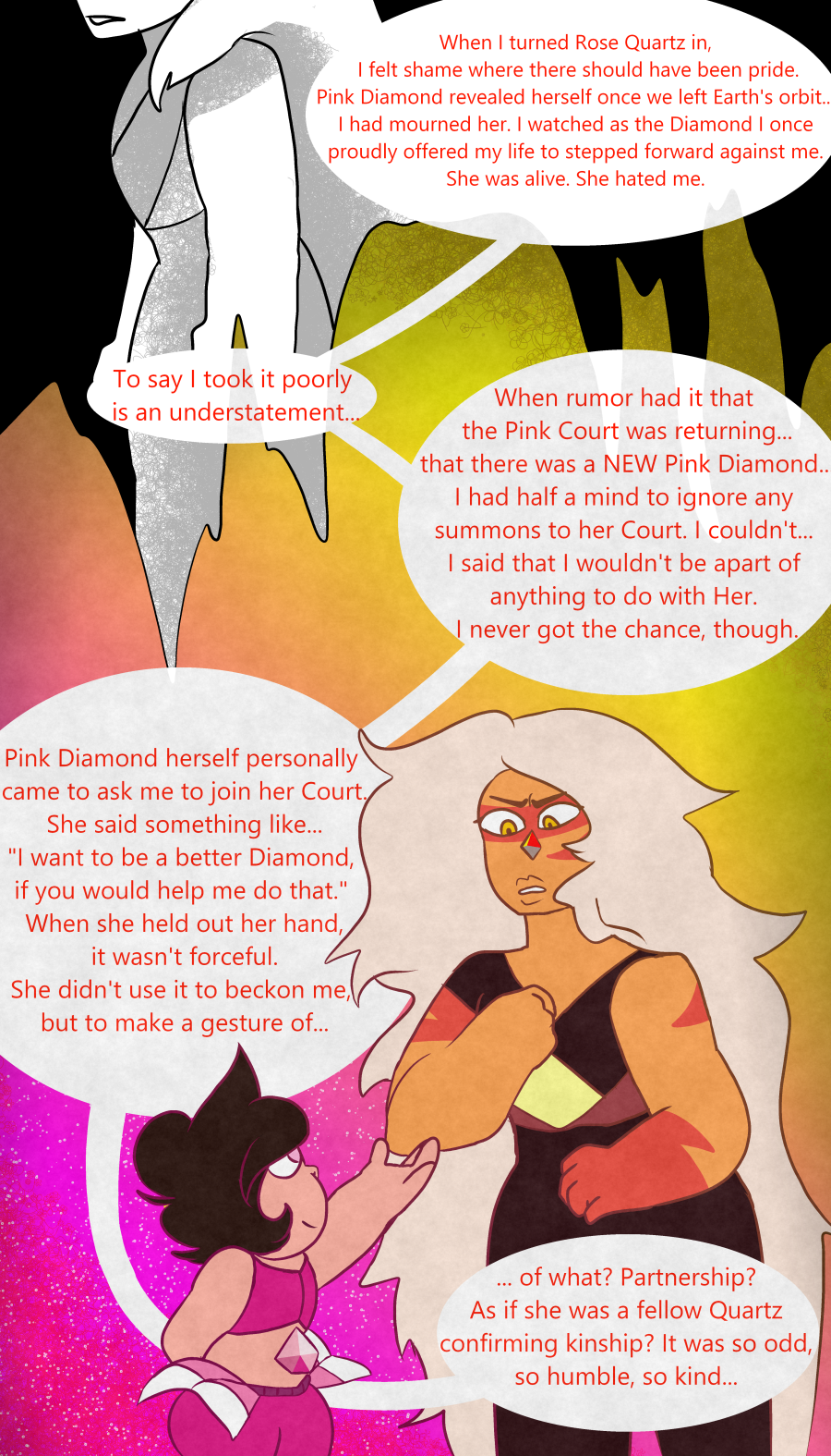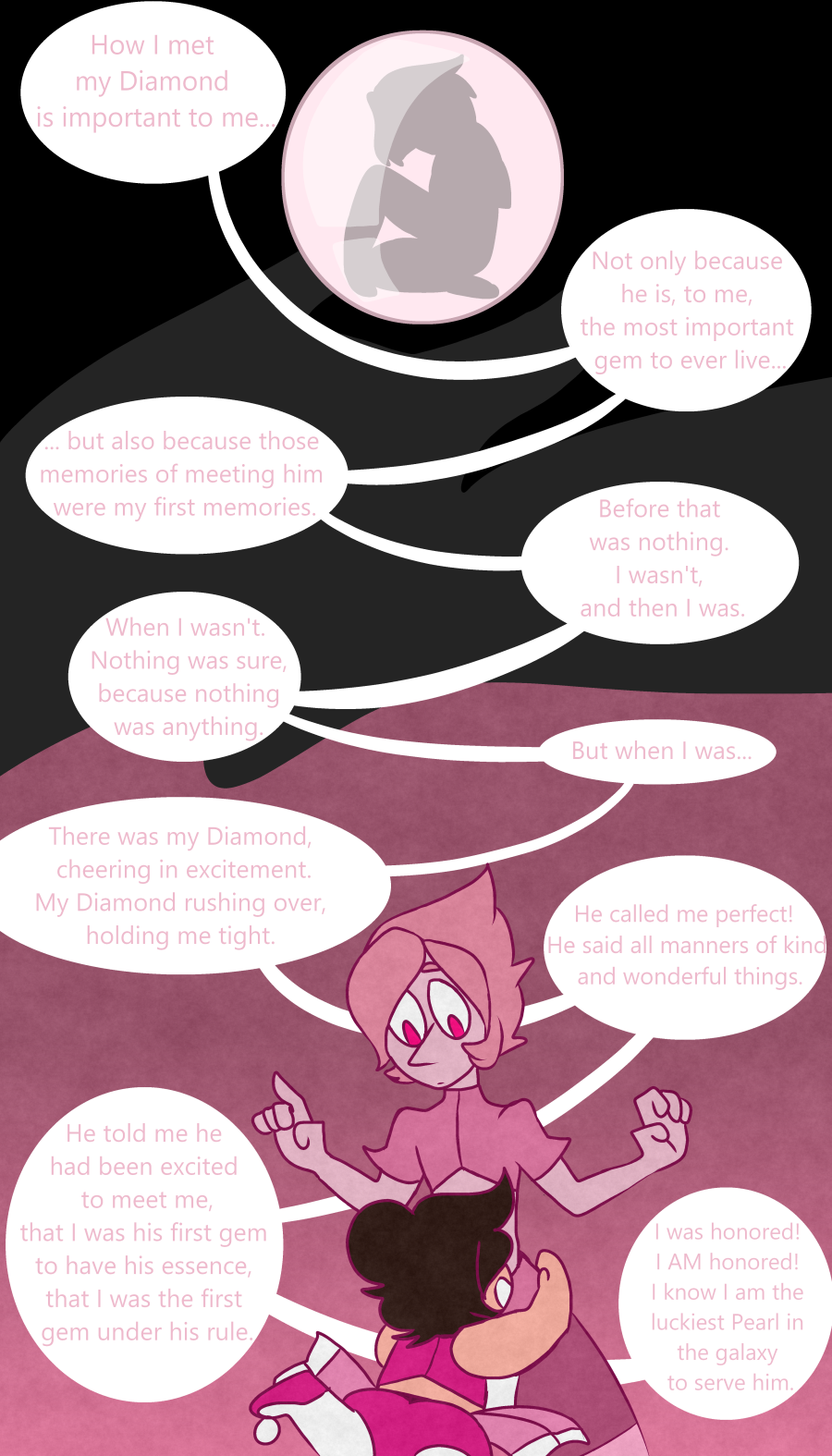In an Alternate Reality where Homeworld comes 13 years earlier than canon. Rose Quartz / Pink Diamond turns herself in to save her friends from certain death. Unknown to Homeworld at the time however, Rose Quartz was already Pregnant with Steven.
