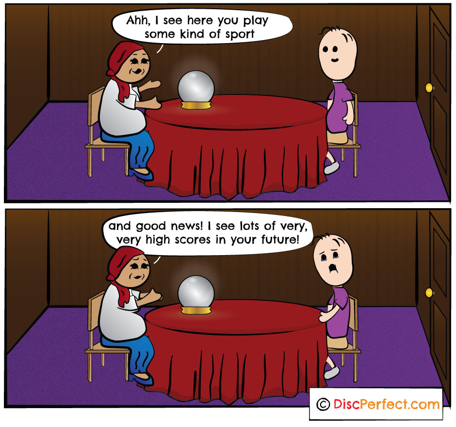 Miss Fortune Teller - If you decide to visit a Fortune Teller, know that sometimes the future is better left unknown...especially in Disc Golf. https://discperfect.com/blogs/comics/miss-fortune-teller