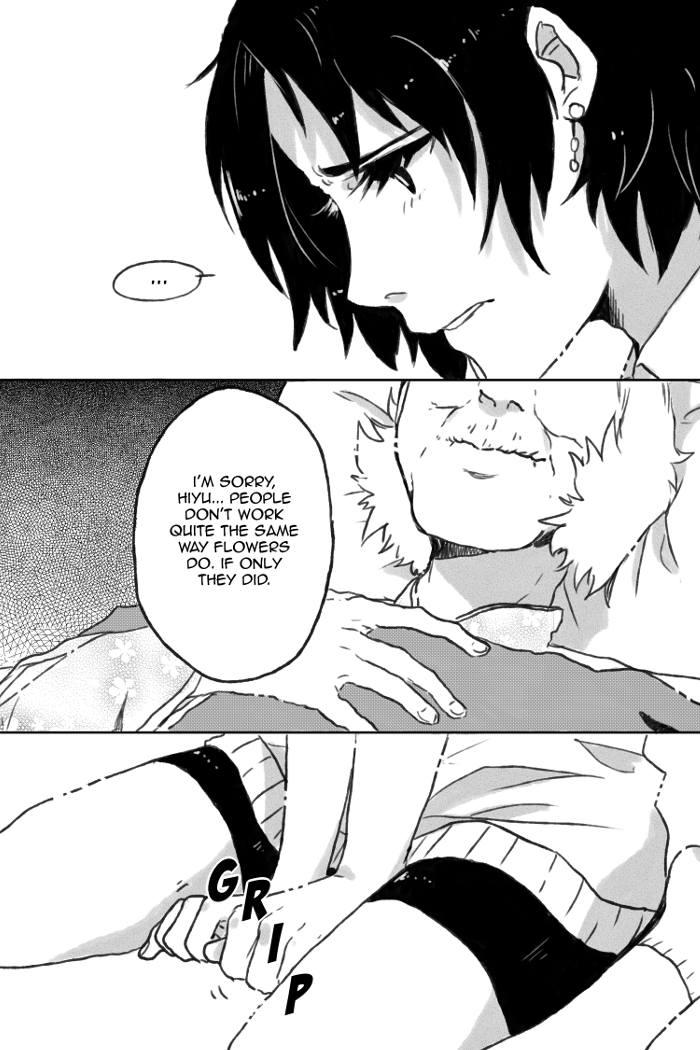 Hiyu's life changed entirely the day she saw the sky light up with flowers. Blind since that day, she's struggled to find her place in the world -- until an unlikely friendship with a mysterious young girl gives her new purpose and understanding of where those flowers led. **Updates every Thursday! (read from right to left)