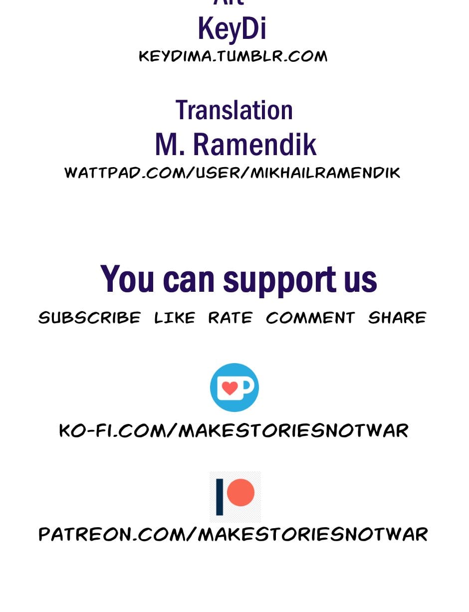 Hi everyone! I am the author of the idea and script for this comic. Readers often ask about updates, so I'll explain the situation right away. The artist can draw about two pages a week, her work is fully paid by me. As well as the work of a translator. Therefore, updates will be regular, but small. I hope for your understanding.