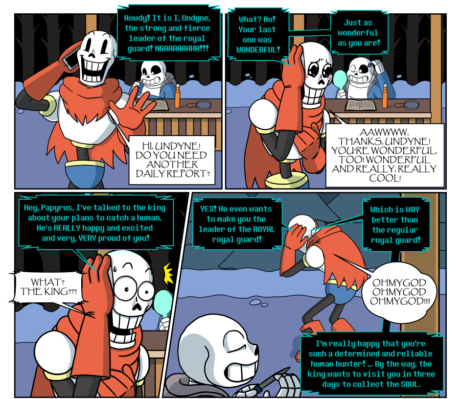 Sans finds Gaster's old journal in the True Lab and starts to read about his science misadventures. It turns out that the royal scientist was a caffeine-addicted manchild who stumbled from one explosive accident to the next. In the midst of that chaos, a mutagen was developed that can turn monsters into humans.