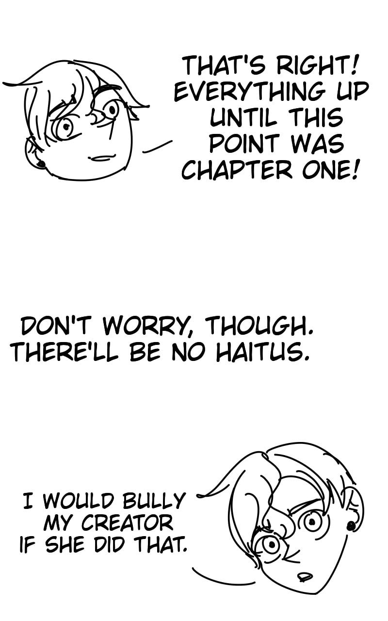 I know I'm not real. I'm just a character and this is just a story. But... What is it about? Why am I like this? Am I alone in knowing that our existence is just for your entertainment? What does this Lab and this... Monster have to do with me? What does this stupid science guy want with me? Why is everything I've ever known turning out to be a goddamn lie?