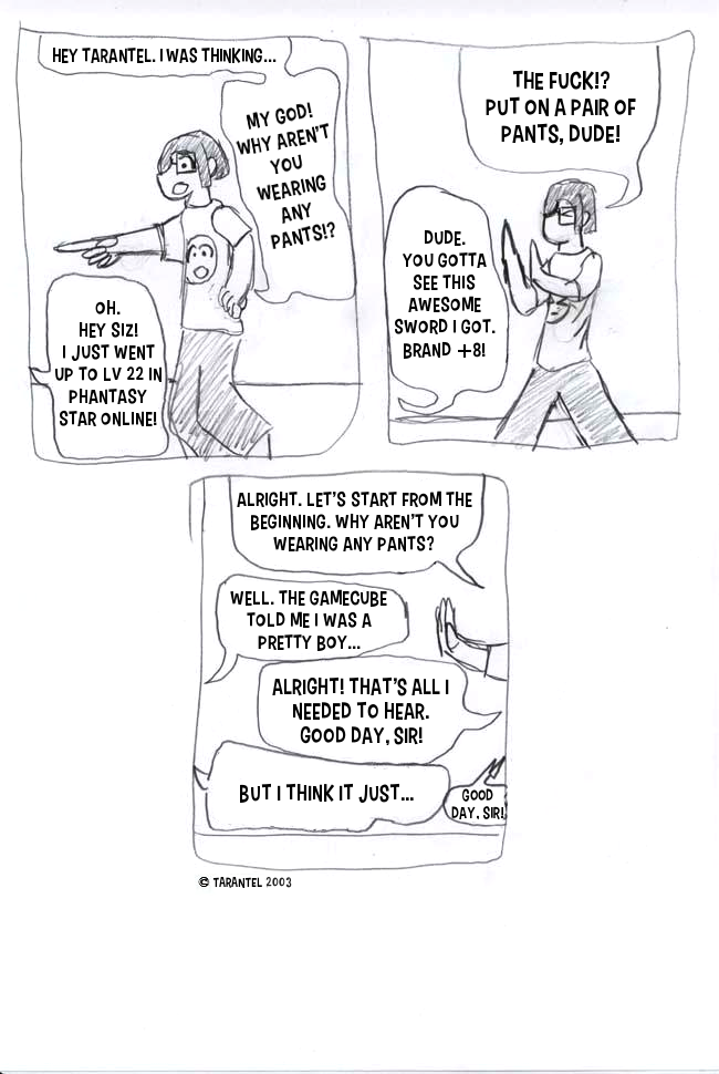 2003. Most of the gaming references here are from Phantasy Star Online. Very good game, even though I like the old RPG-series better. Phantasy star 4 is probably one of my favourite games, ever.
