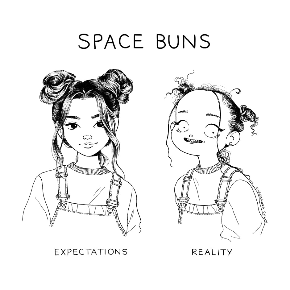 Lol I’m wearing space buns rn and boyyyyy I wish I looked anywhere near as ok as the girl on the right, I look like shit.