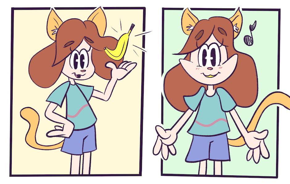 Kat eats a banana.
