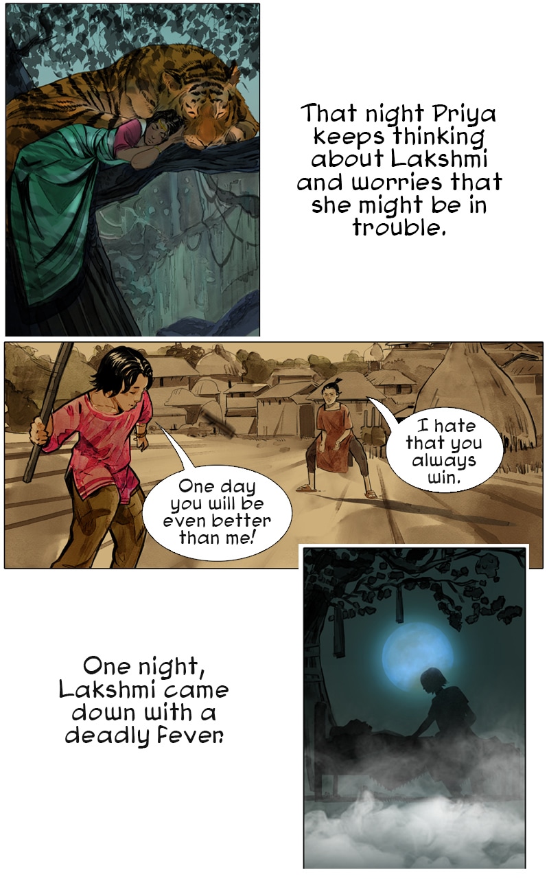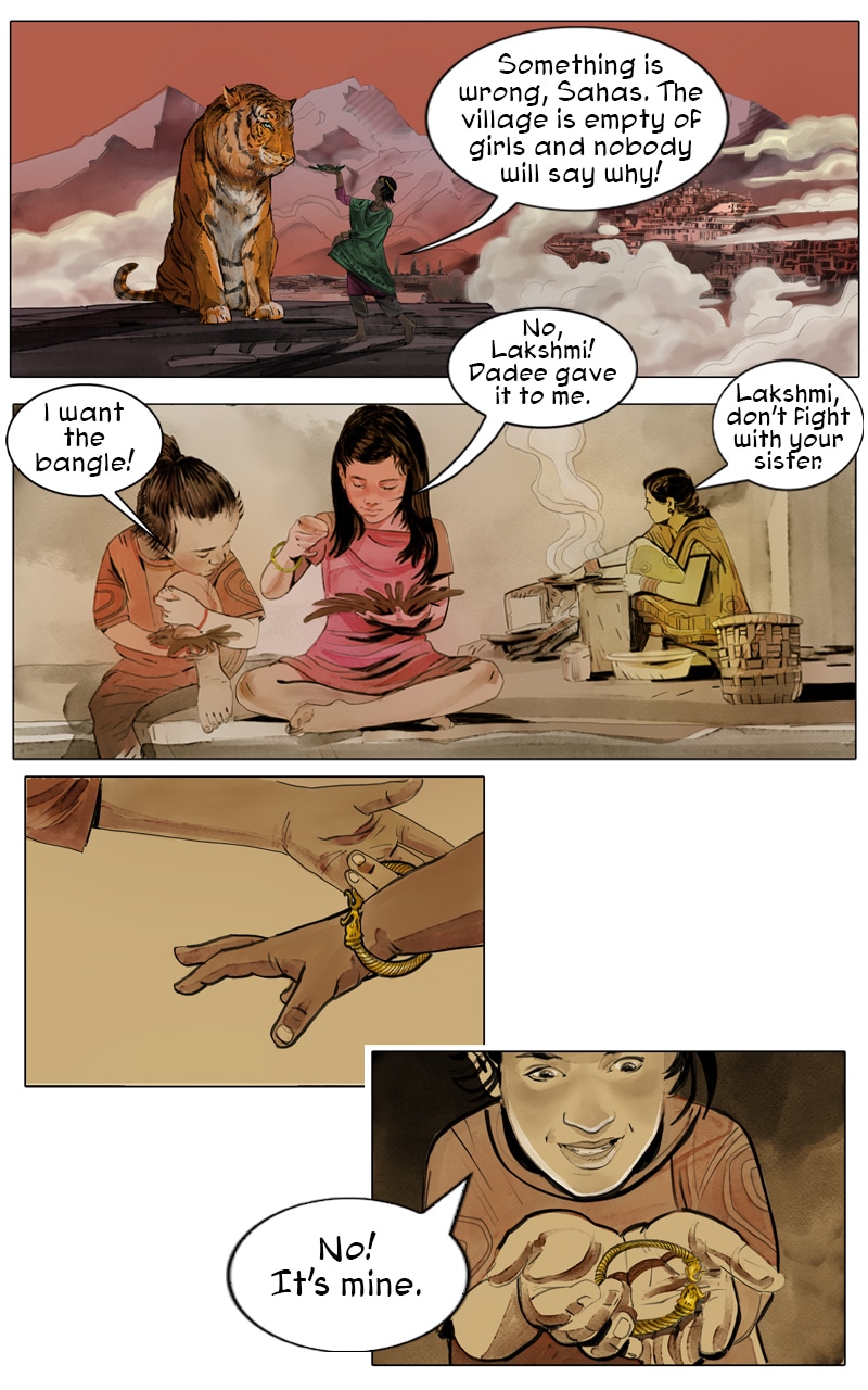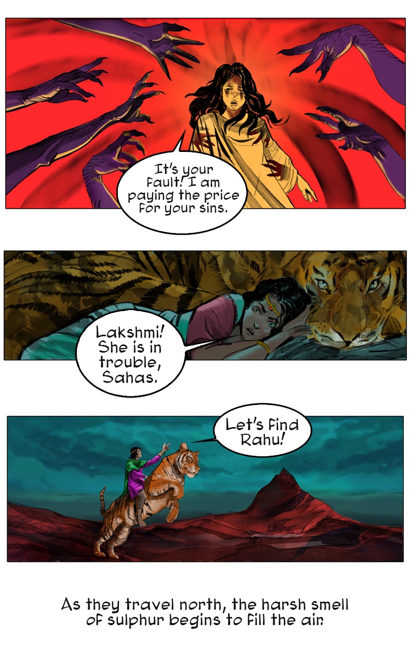Priya continues her adventures with her flying tiger, Sahas. She returns home and discovers all the young women have disappeared in her rural village including her sister, Laxmi. She learns they were taken to an underground brothel city called Rahu, which is ruled by a demon who gets his power through fear and entrapment of women. "A woman vanquishes her fears and dismisses the ridicule, speaking out as a survivor and becoming an inspiration to thousands of women in India who have faced the same ordeal — a modern-day female superhero. " – VICE News